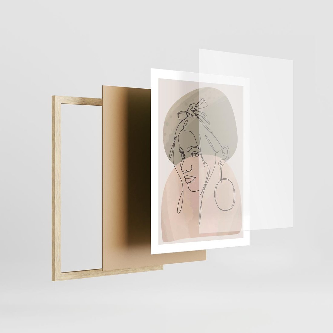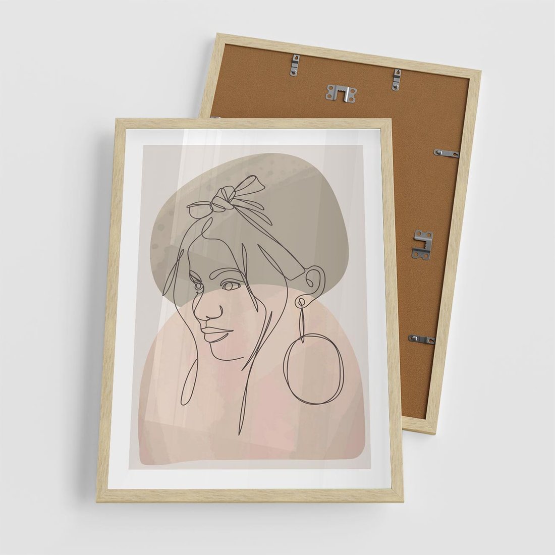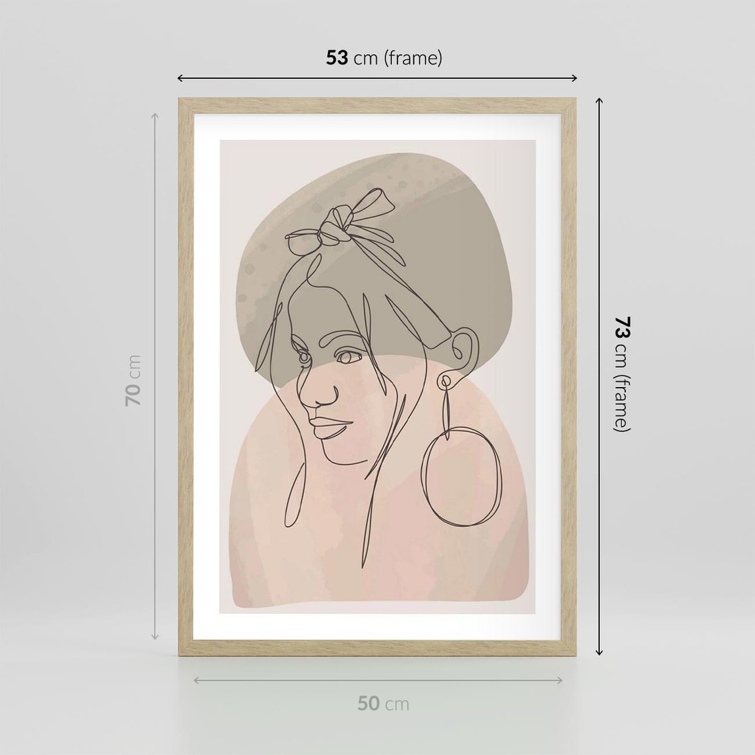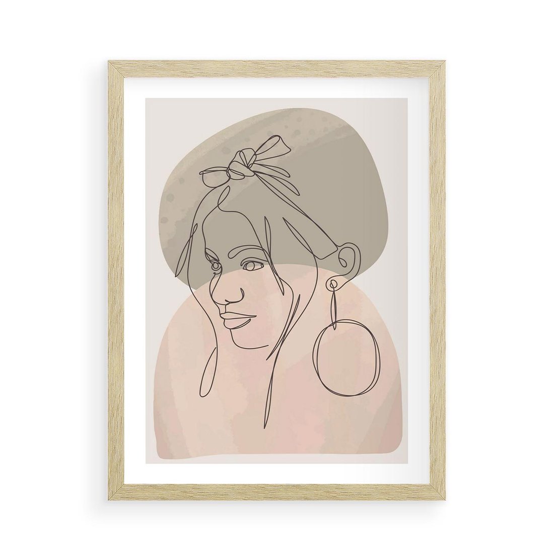 Plakat w ramie 50x70 - Kobieta w Linii: Akwarelowa Harmonia - kobieta one line, grafika - rama drewno