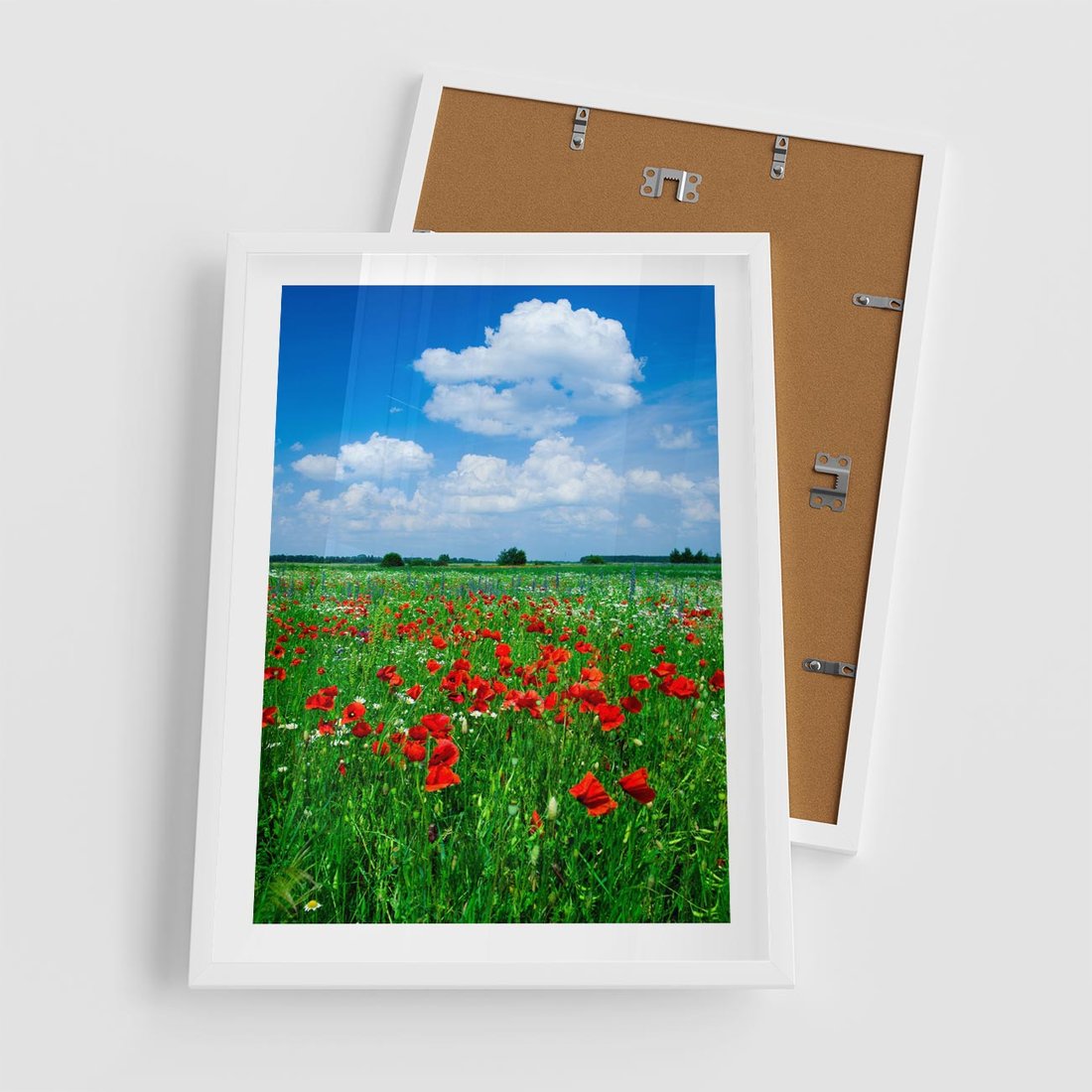 Plakat w ramie 50x70 - Kolorowa łąka pełna maku - łąka, maki - rama biała