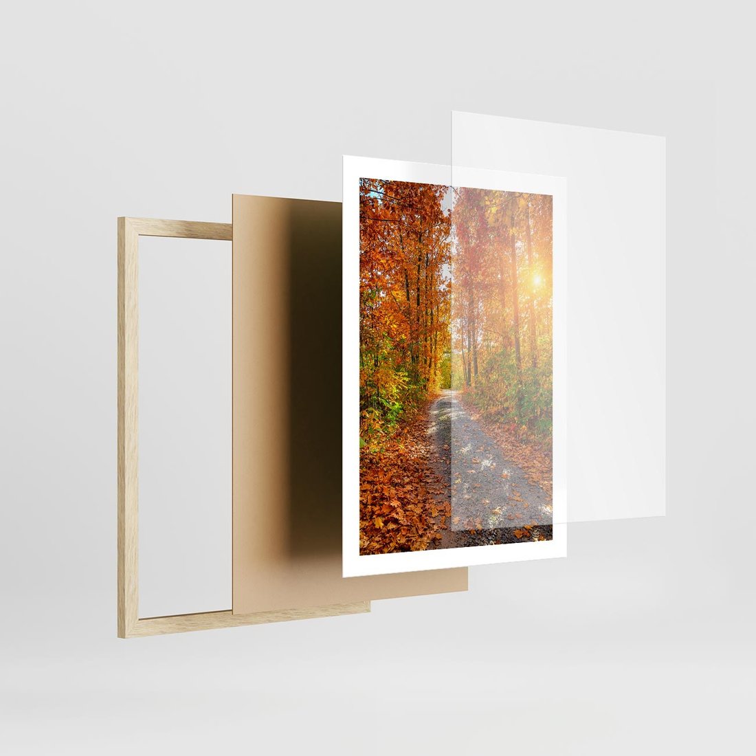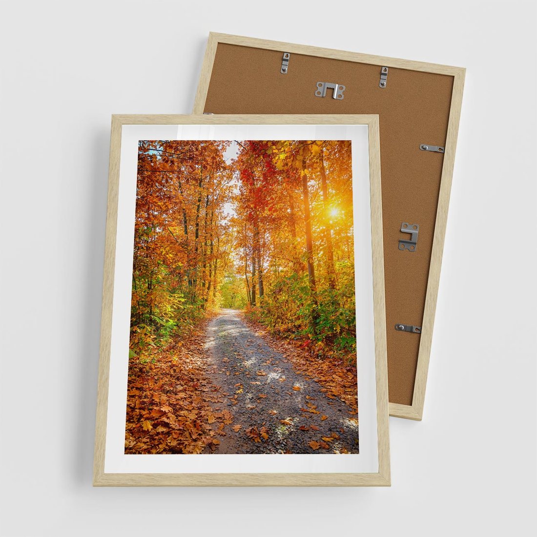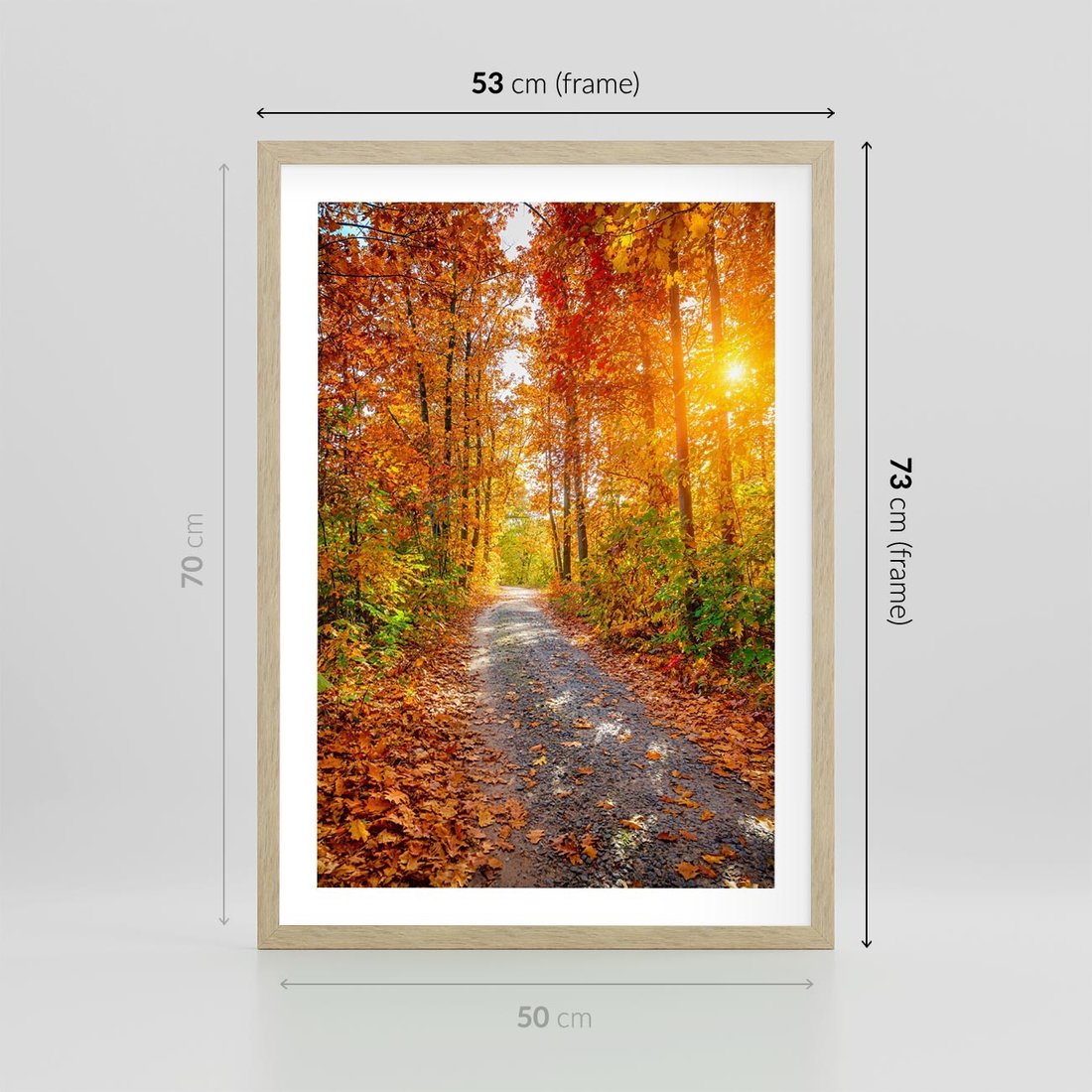 Plakat w ramie 50x70 - Kolorowe drzewa na ścieżce jesieni - las, jesień - rama drewno