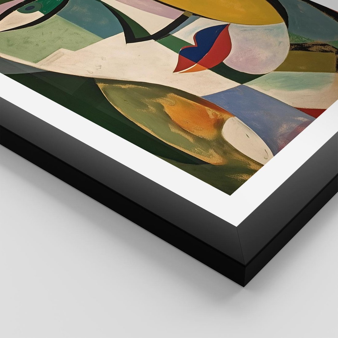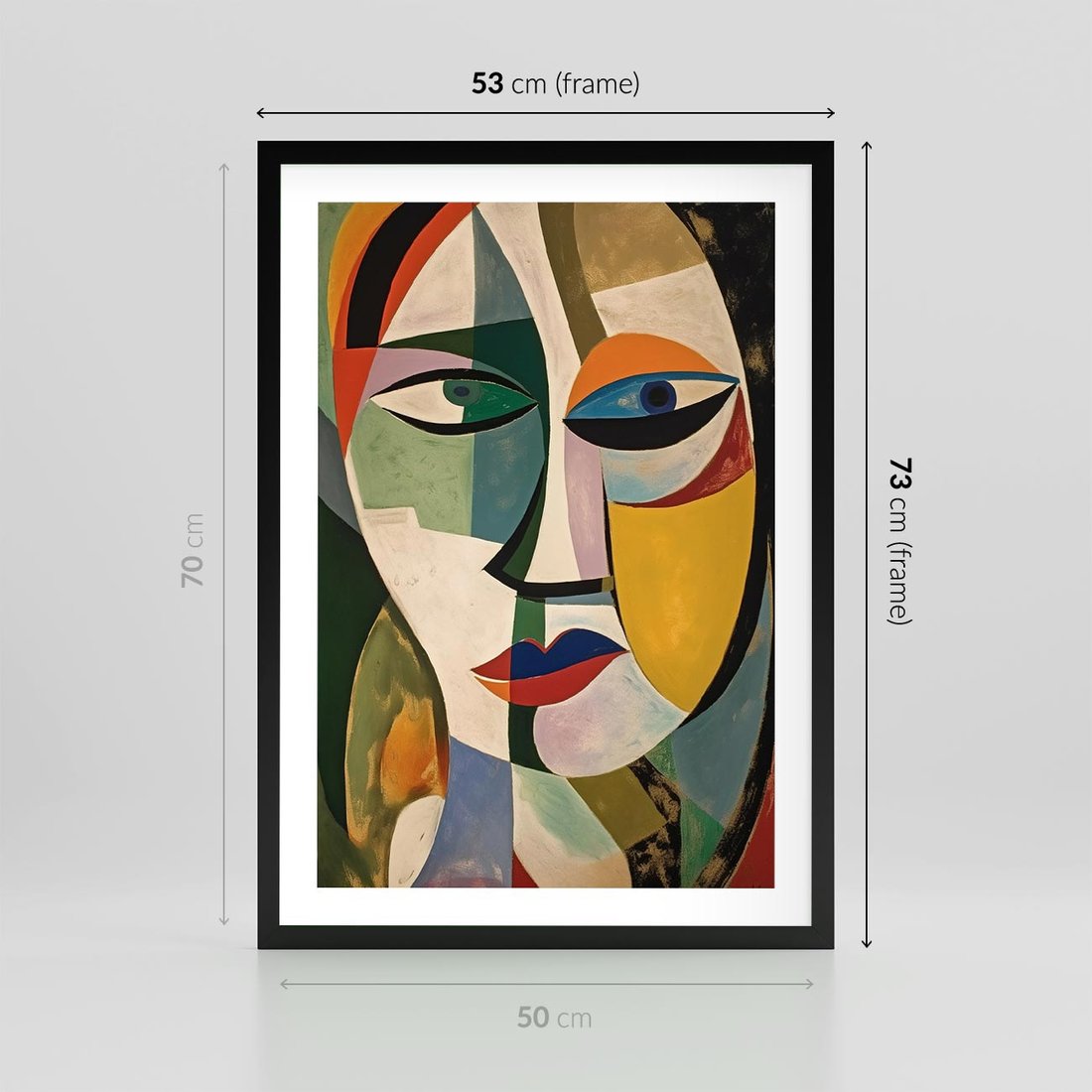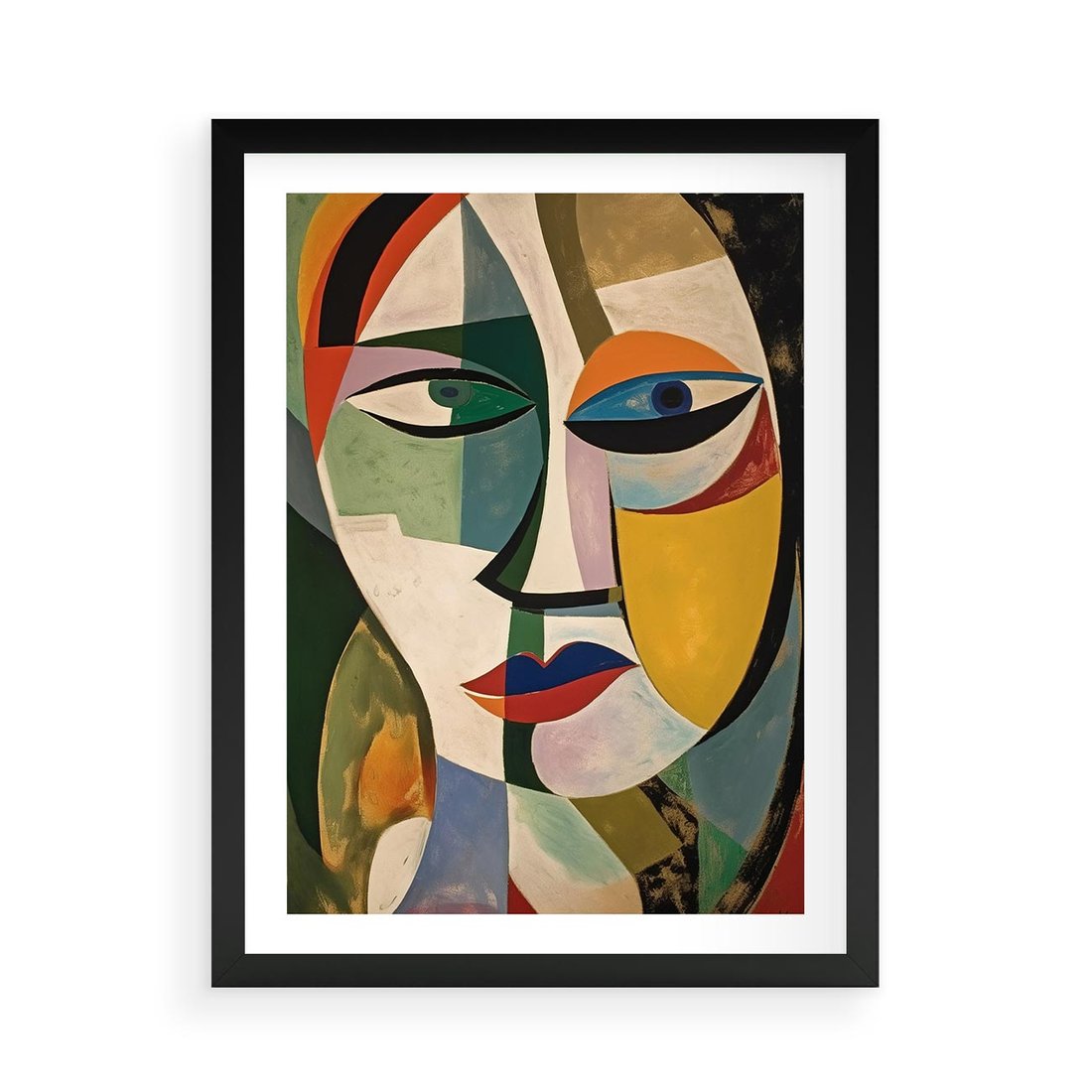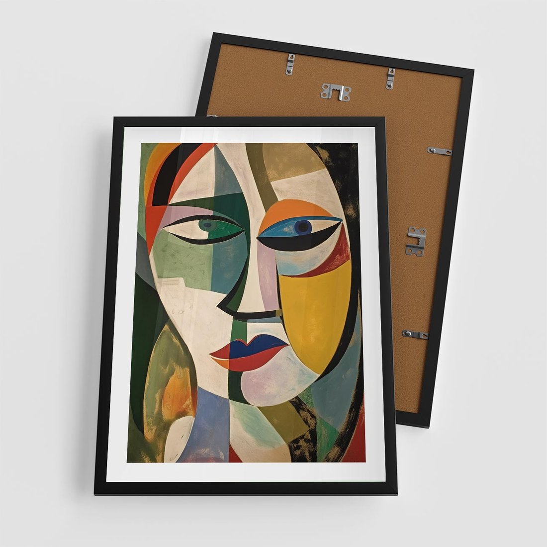 Ten abstrakcyjny obraz olejny przedstawia twarz kobiety w stylu nawiązującym do Picassa. Żywe i ekspresyjne kolory tworzą dynamiczną kompozycję, ukazującą emocje i indywidualność. To unikalne dzieło sztuki wyróżni się w każdym wnętrzu.