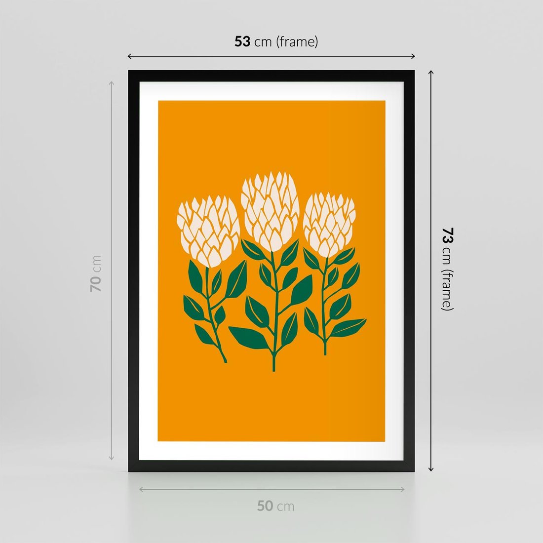 Plakat w ramie 50x70 - Kolorowe Impresje - abstrakcyjna kwiatowa kompozycja, żółte mocne tło - rama czarna