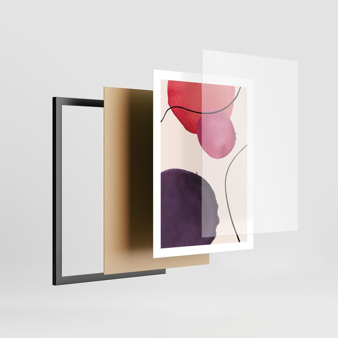Plakat w ramie 50x70 - Kolorowe Impresje - abstrakcyjne akwarelowe plamy, nieregularne linie - rama czarna