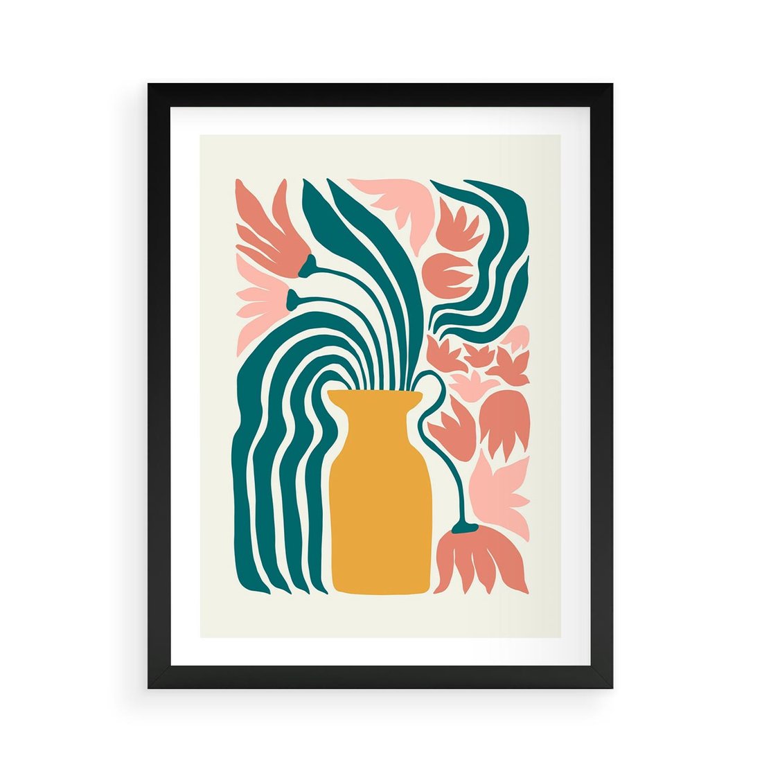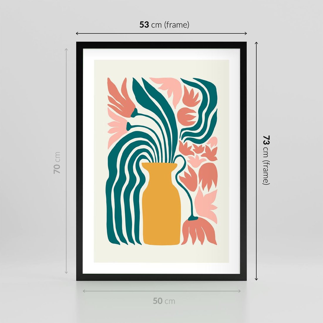 Plakat w ramie 50x70 - Kolorowe Pasmo - abstrakcyjne kwiaty w wazonie, pdastelowe kolory - rama czarna