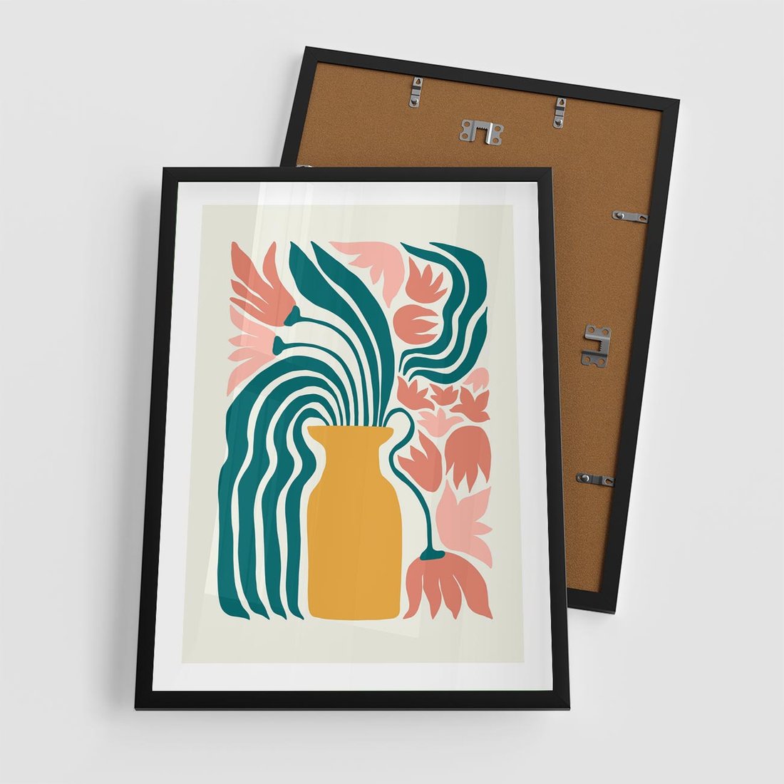 Ten nowoczesny plakat ukazuje abstrakcyjne kwiaty w delikatnych pastelowych odcieniach, tworząc wyjątkową kompozycję w wazonie. Sztuka ta emanuje spokojem i estetyką, zachęcając do odkrywania piękna w prostocie.