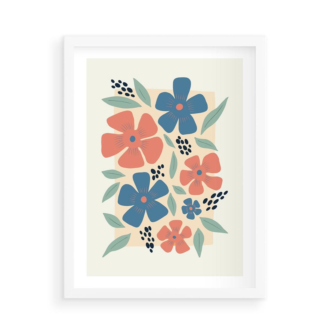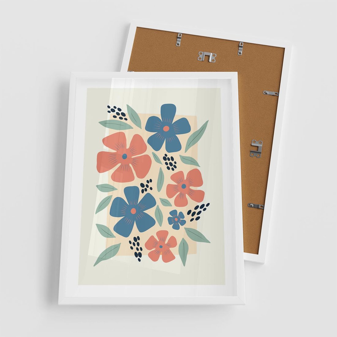 Ten plakat w nowoczesnej abstrakcji odkrywa piękno kwiatów, balansując z delikatną typografią. Kompozycja oddaje wyjątkową estetykę natury i sztuki, tworząc inspirującą przestrzeń.