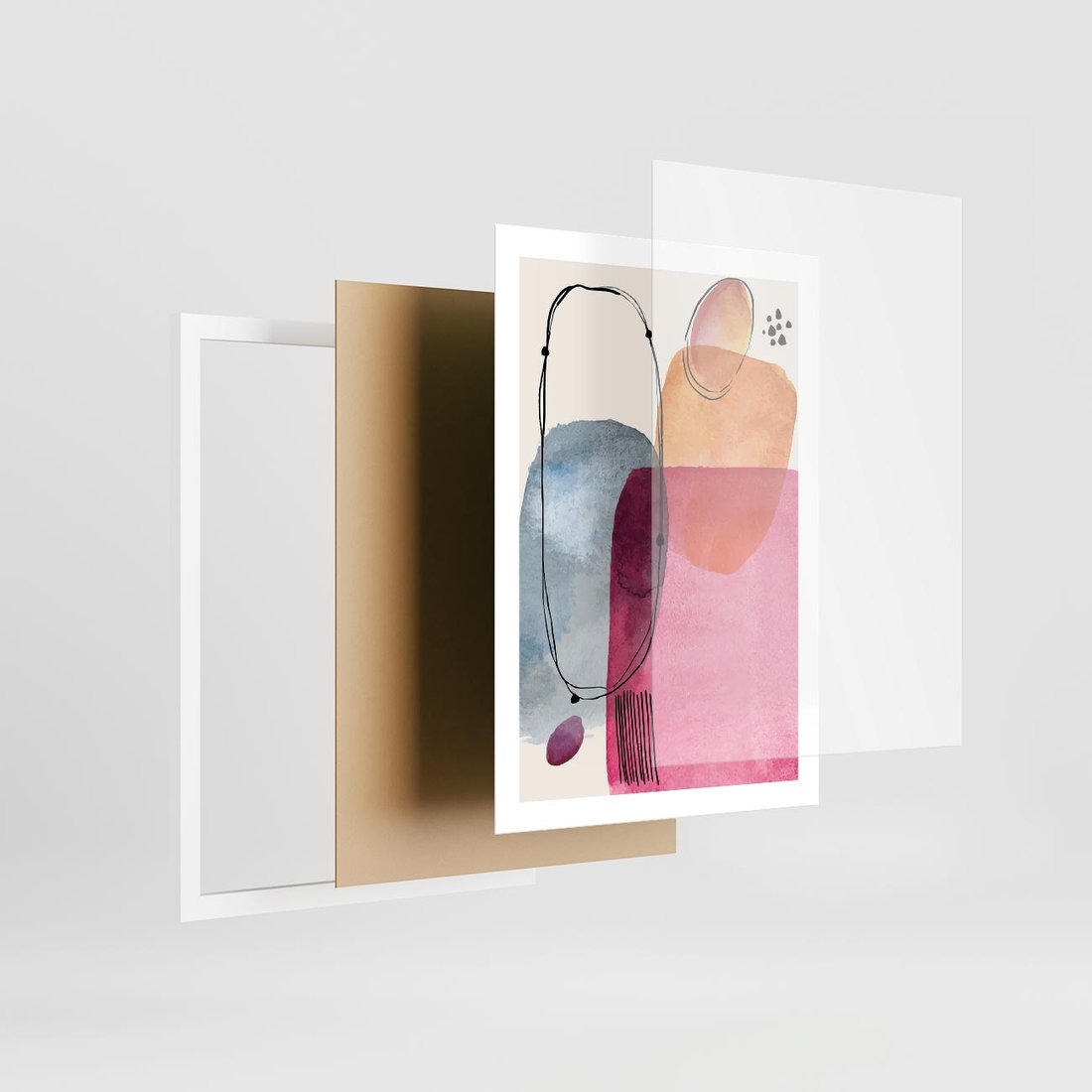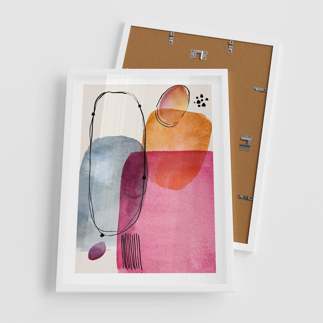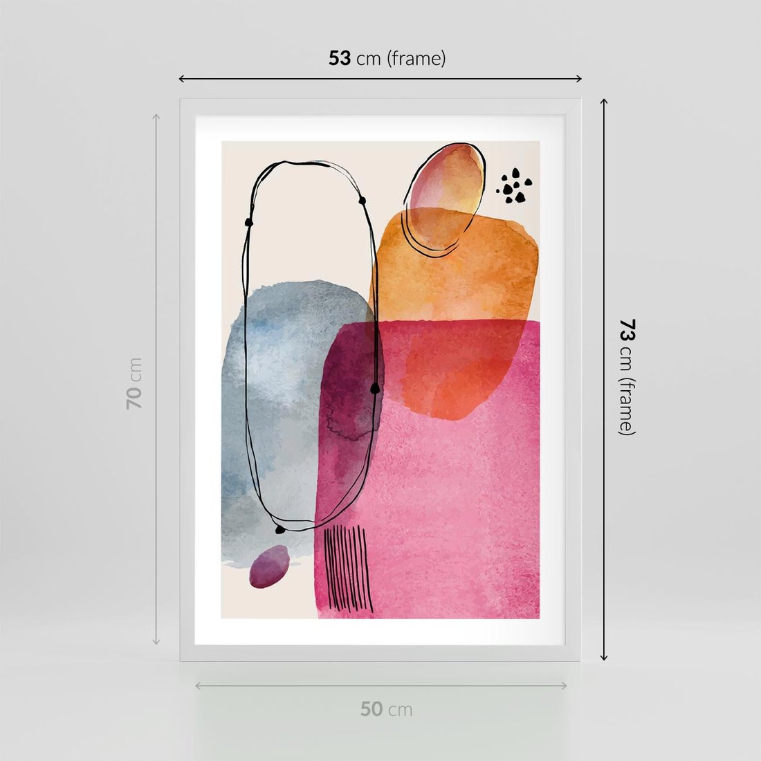 Kolorowe pastelowe plamy w rozmytych, żywych odcieniach, zdobione delikatnymi szlaczkami. To minimalistyczne dzieło sztuki, które wprowadza wibrację i subtelność do Twojej przestrzeni, tworząc kompozycję pełną wyrafinowanego minimalizmu.