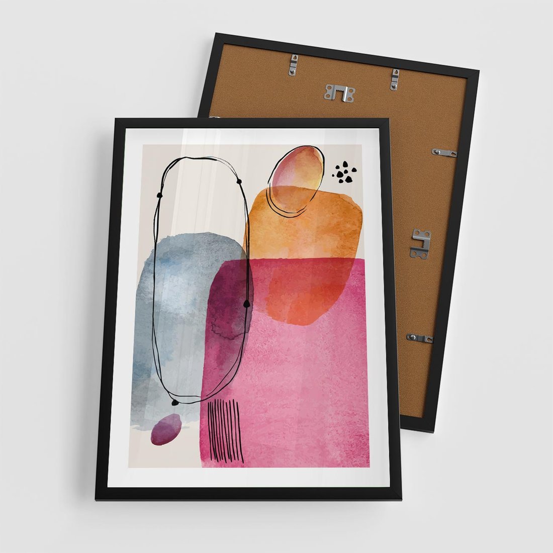 Kolorowe pastelowe plamy w rozmytych, żywych odcieniach, zdobione delikatnymi szlaczkami. To minimalistyczne dzieło sztuki, które wprowadza wibrację i subtelność do Twojej przestrzeni, tworząc kompozycję pełną wyrafinowanego minimalizmu.