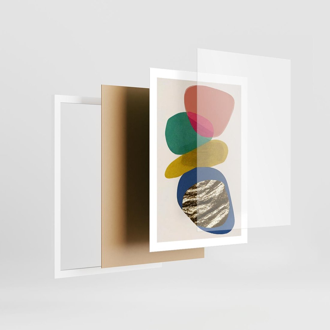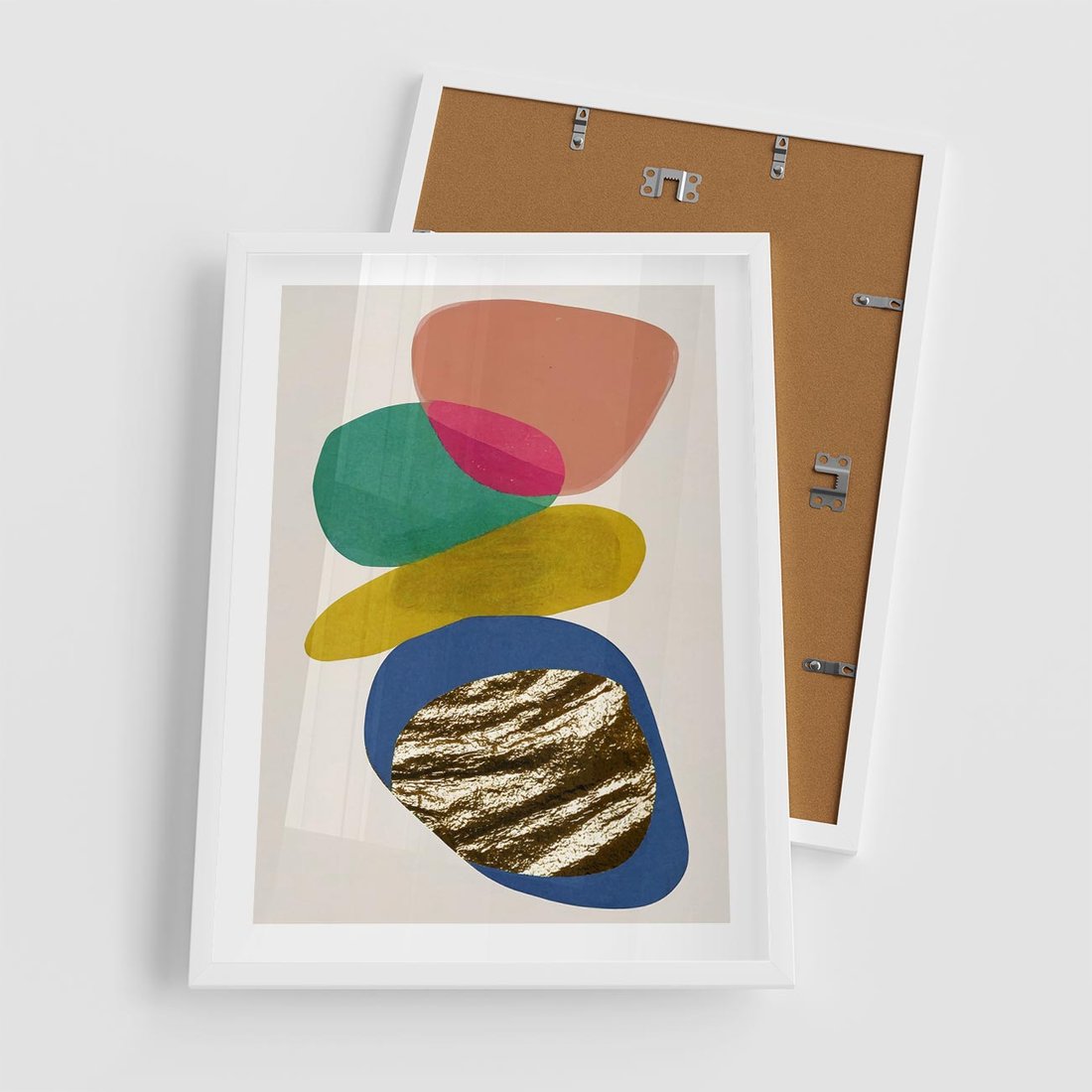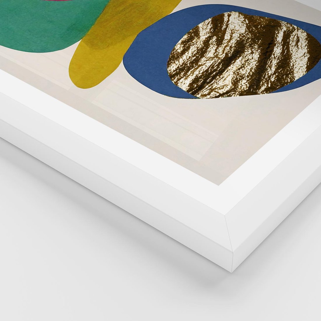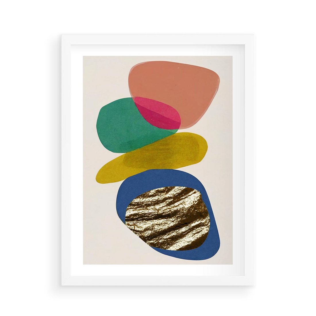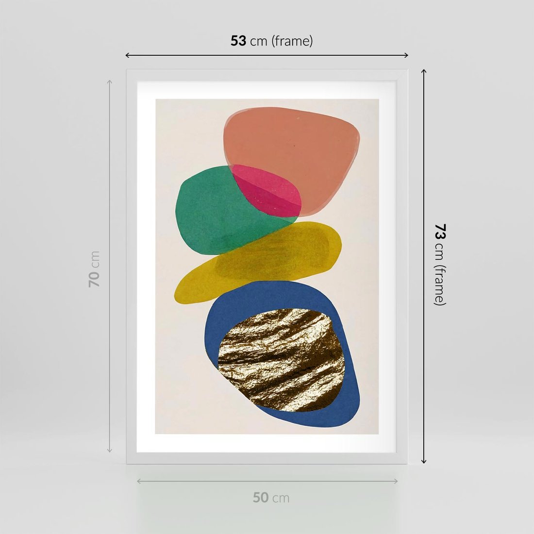 Plakat w ramie 50x70 - Kolorowe Przenikanie Kształtów - abstrakcyjne formy, obraz olejny - rama biała