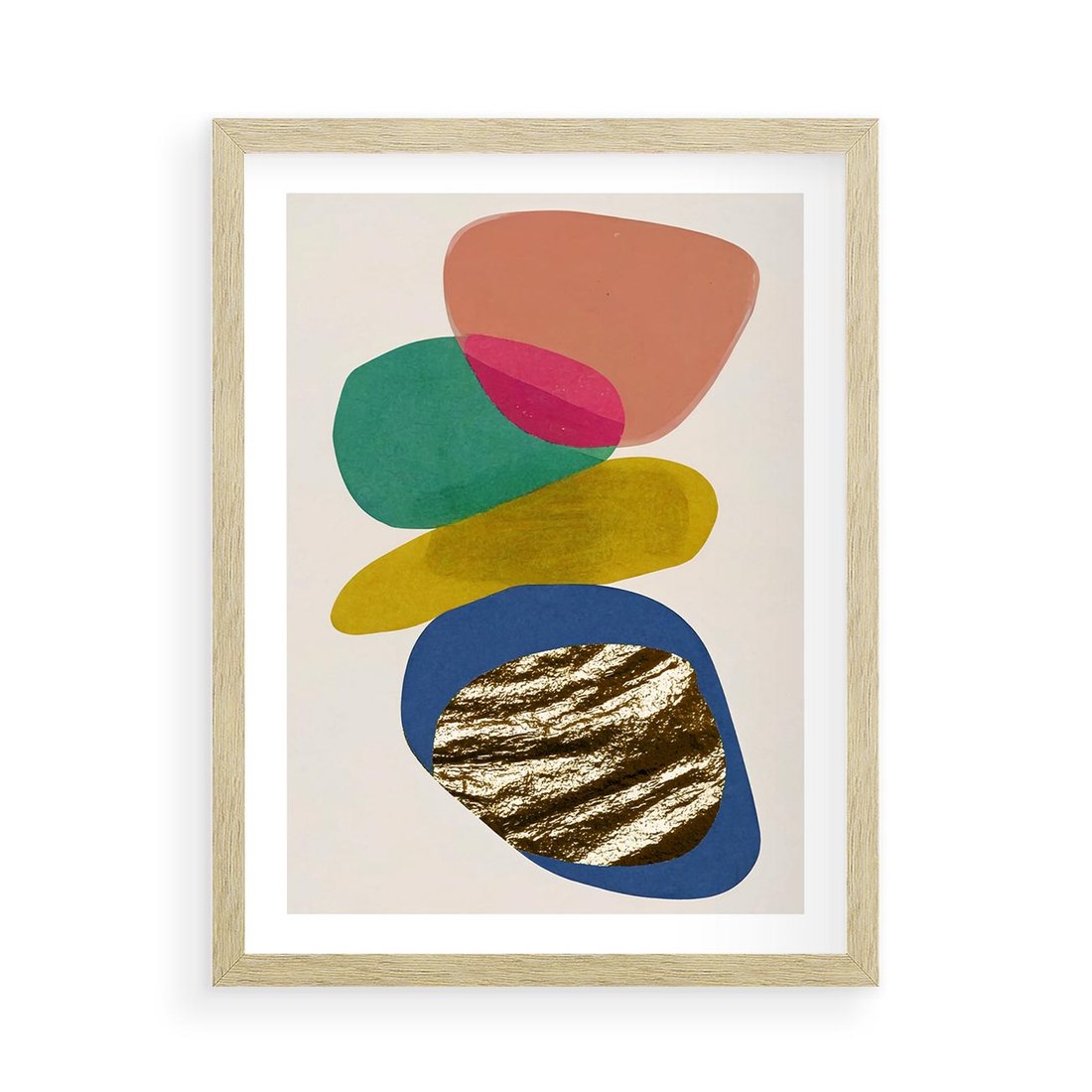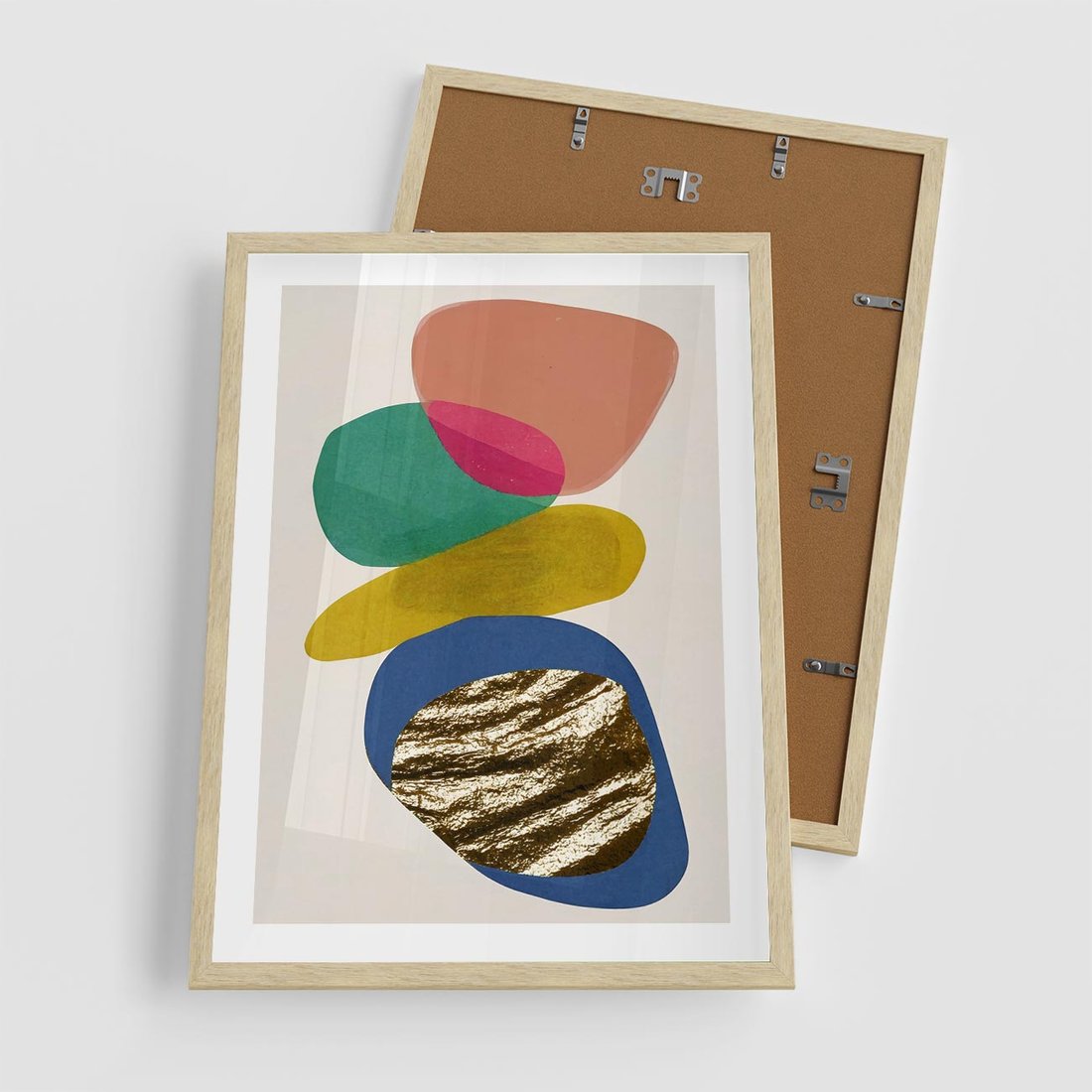 Plakat w ramie 50x70 - Kolorowe Przenikanie Kształtów - abstrakcyjne formy, obraz olejny - rama drewno