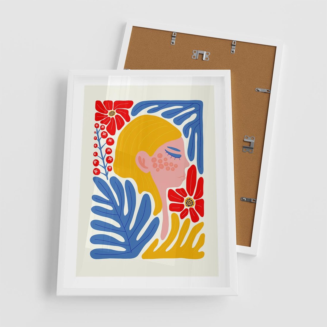 Ten nowoczesny plakat eksploruje kobiecą naturę w abstrakcyjny sposób, wykorzystując wyraziste kolory. Sztuka ta jest manifestacją siły, piękna i ekspresji, tworząc unikalne wrażenie w przestrzeni.