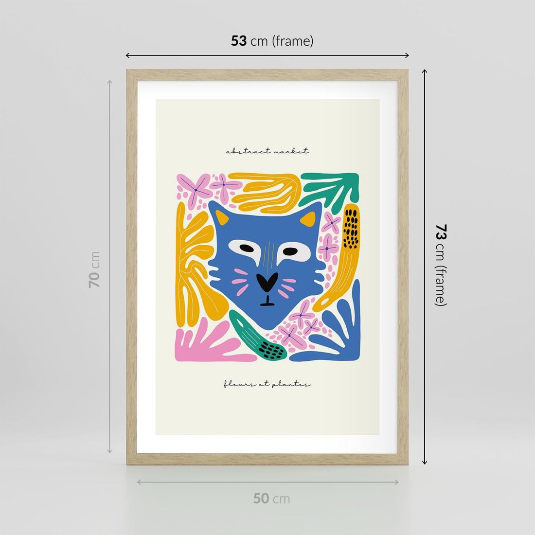 Plakat w ramie 50x70 - Kolorowe Spektrum - abstrakcyjny plakat, niebieski kot - rama drewno