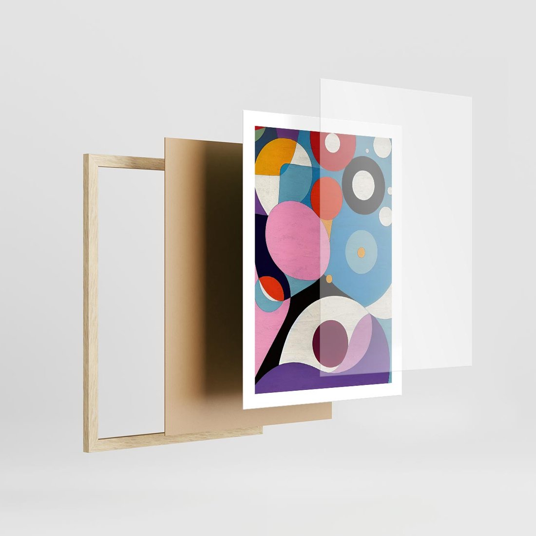 Plakat w ramie 50x70 - Kolorowe Ulotności - abstrakcyjny obraz olejny, żywe kolory - rama drewno