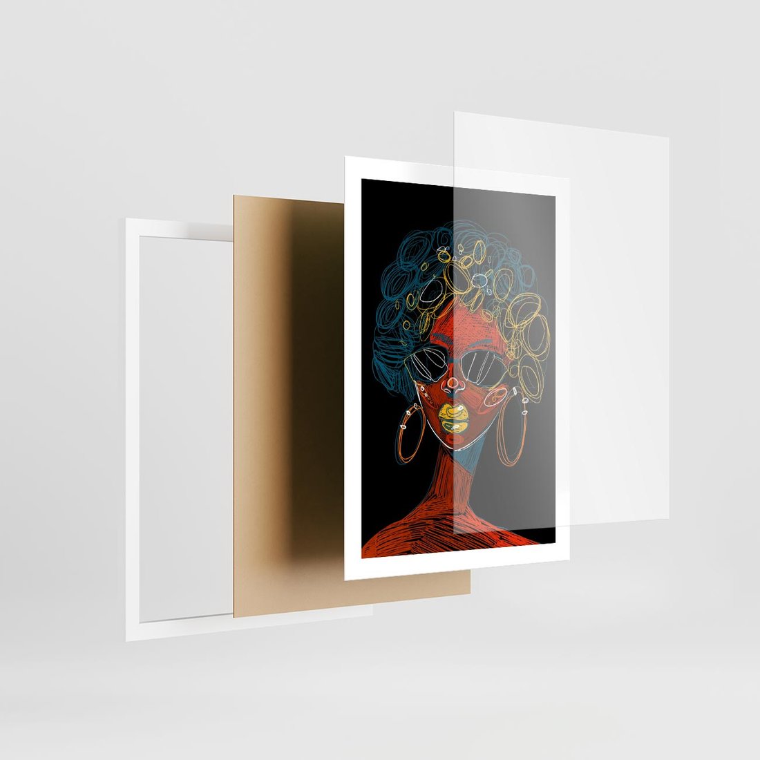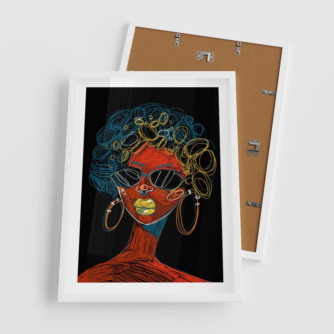 Plakat w ramie 50x70 - Kolorowe Wibracje Rzeczywistości - abstrakcyjny portret kobiety, twarz - rama biała