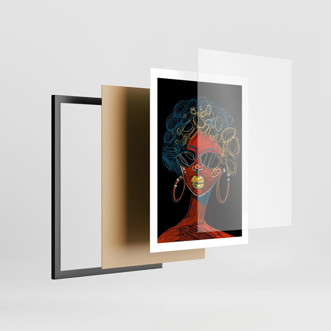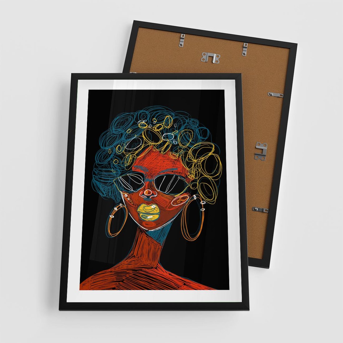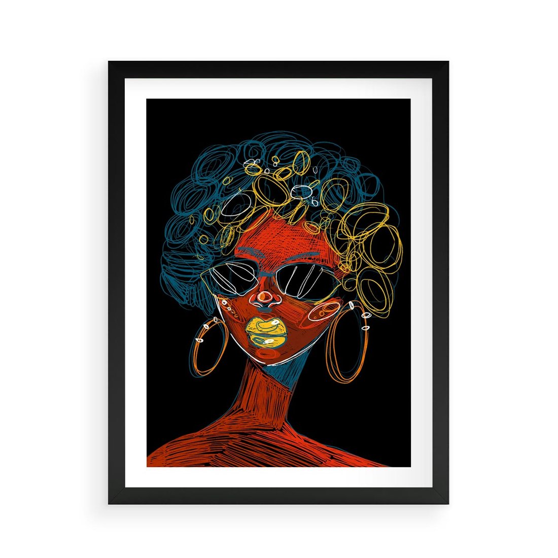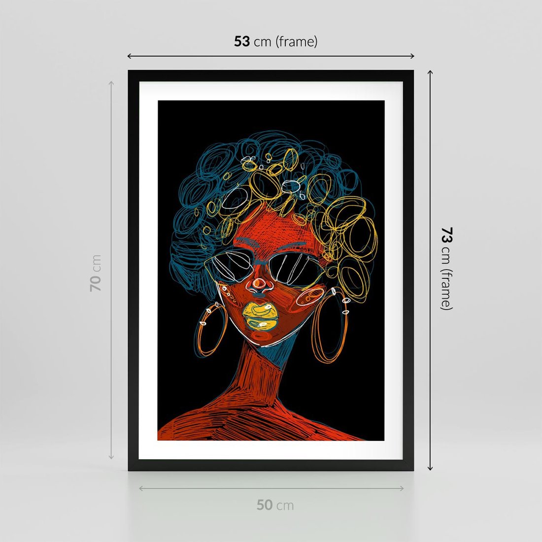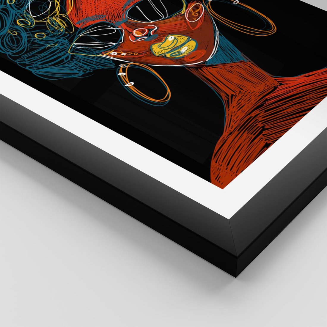 Plakat w ramie 50x70 - Kolorowe Wibracje Rzeczywistości - abstrakcyjny portret kobiety, twarz - rama czarna