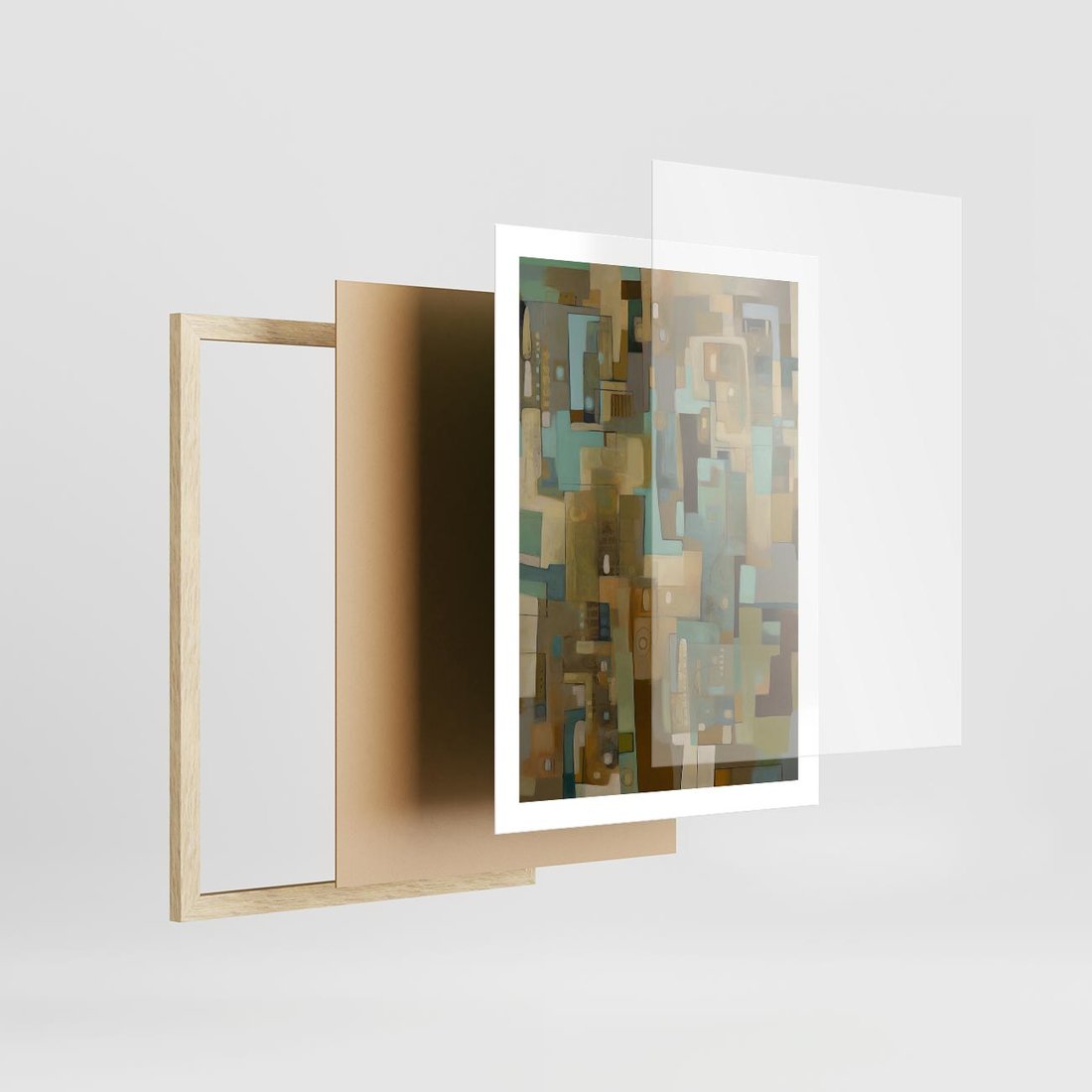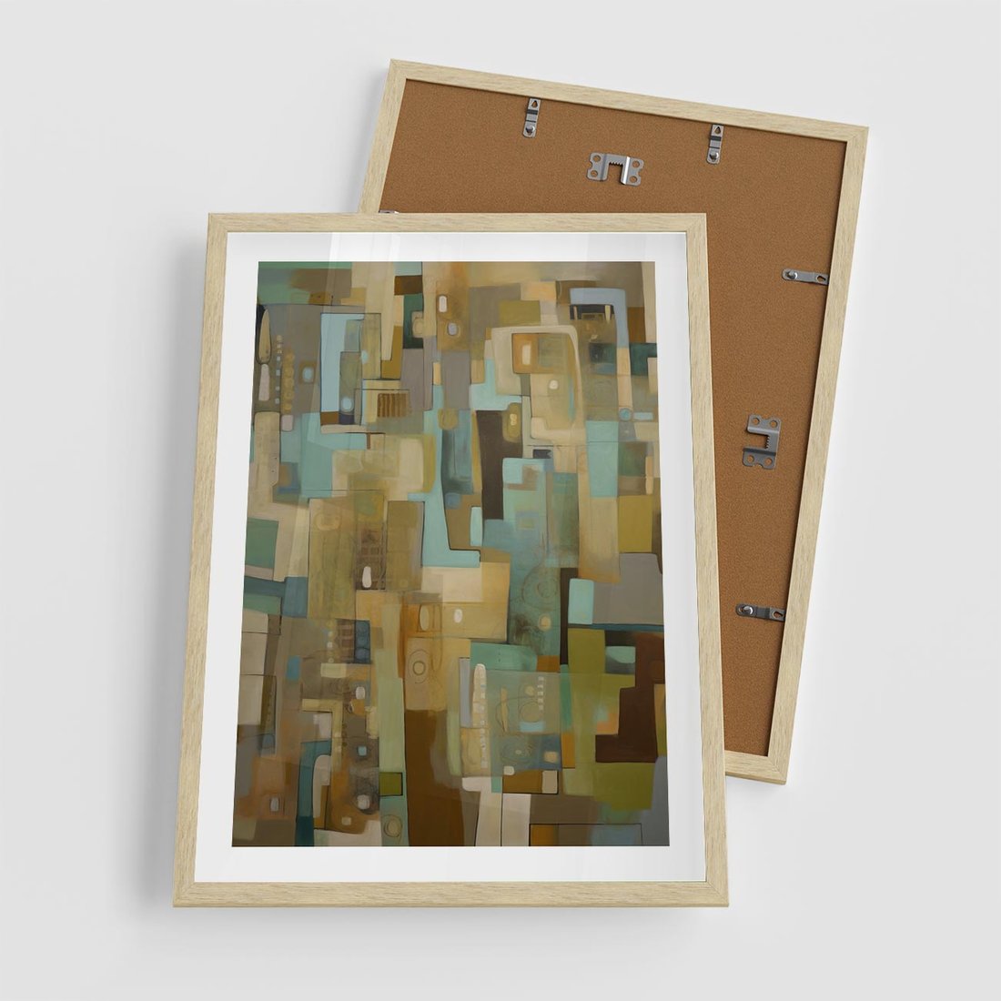 Ten abstrakcyjny obraz jest pełen mnogości kolorów i drobnych elementów, które zaskakująco tworzą spójną całość. Geometryczne kształty w ciekawej kompozycji zapewniają intrygujący efekt, przyciągając wzrok i budząc ciekawość. To dzieło sztuki jest dynamiczne i pełne energii.