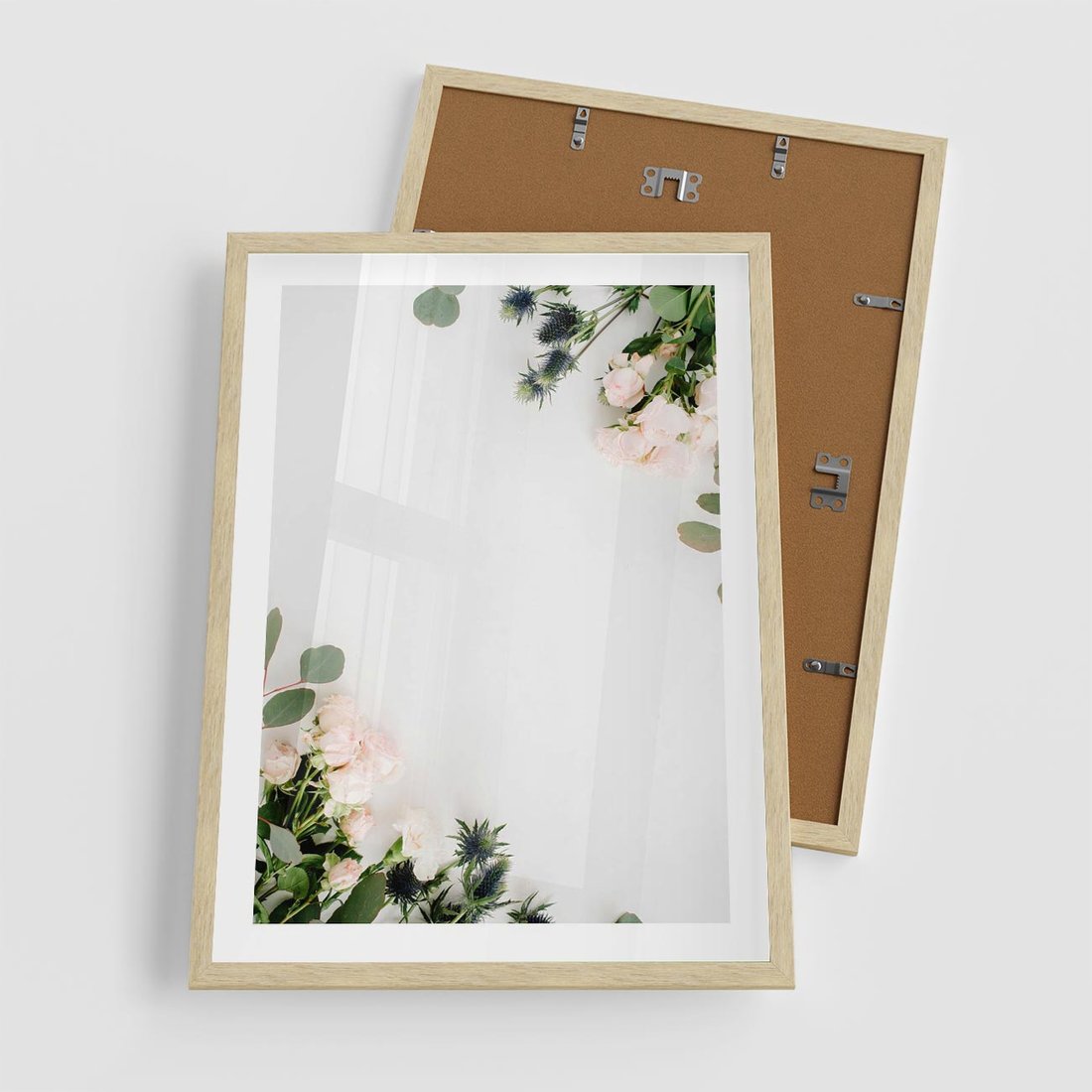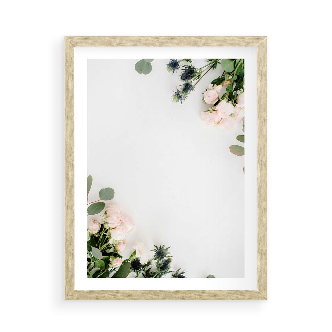 - Plakat w ramie 50x70 - Kompozycja z Białych Róż i Eukaliptusa