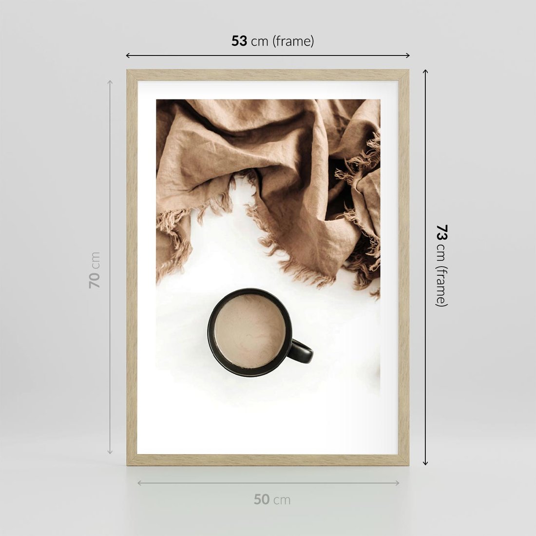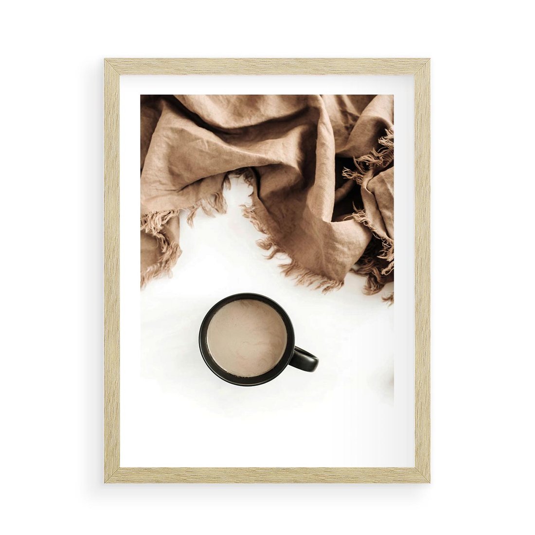 Plakat w ramie 50x70 - Kompozycja z Brązowym Kocem i Czarną Kawą - kompozycja, brązowy koc - rama drewno