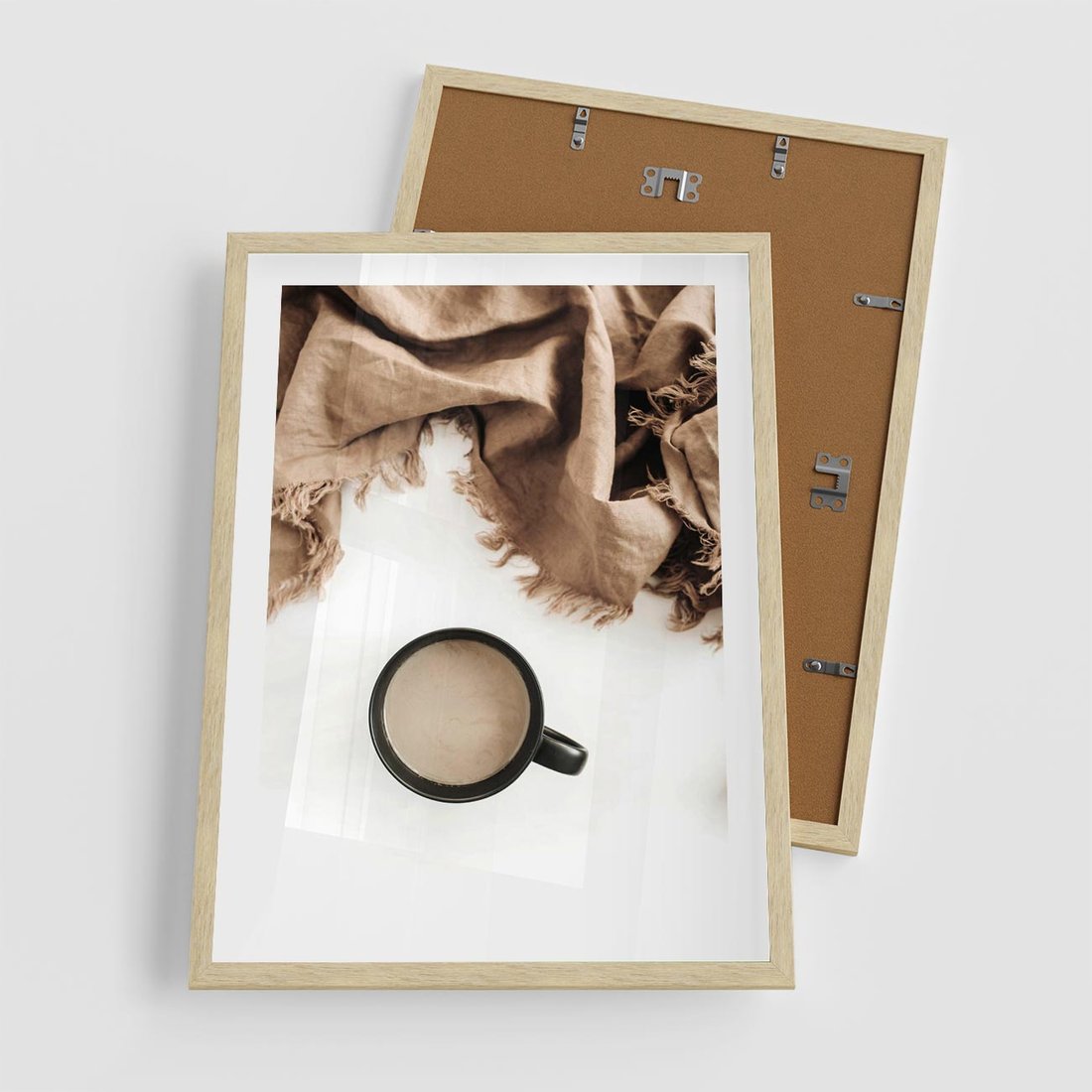 - Plakat w ramie 50x70 - Kompozycja z Brązowym Kocem i Czarną Kawą