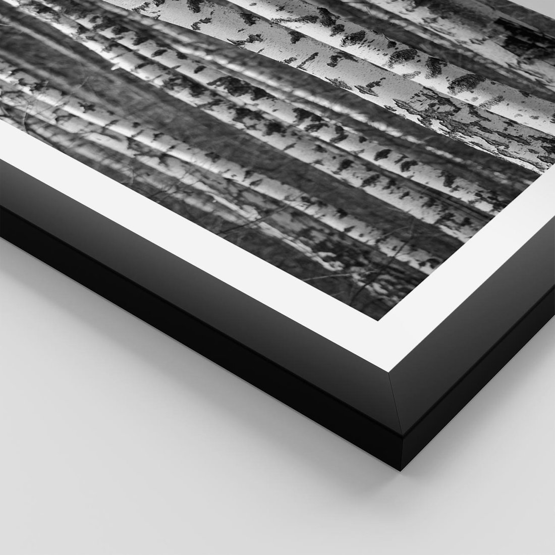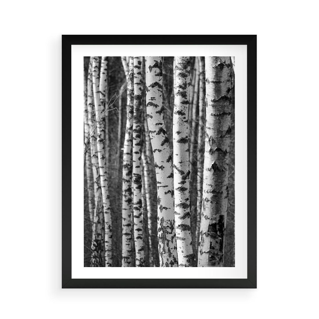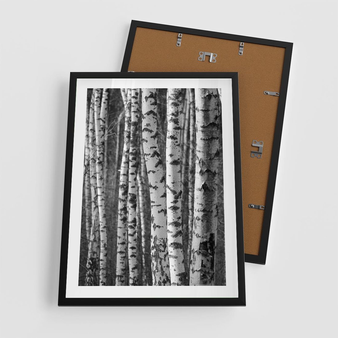 Plakat w ramie 50x70 - Kontrast Monochromatyczny - brzozy, czarno - rama czarna