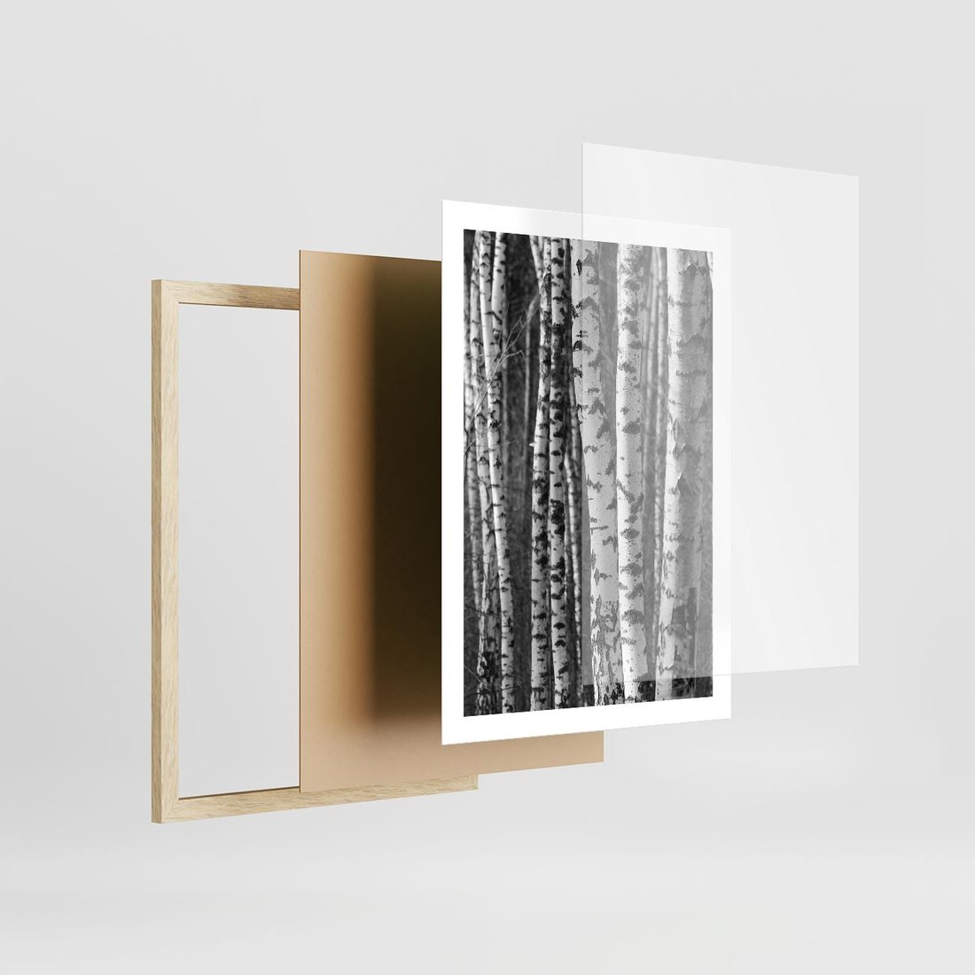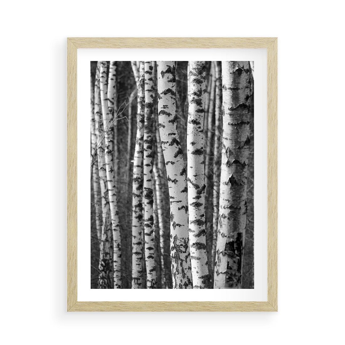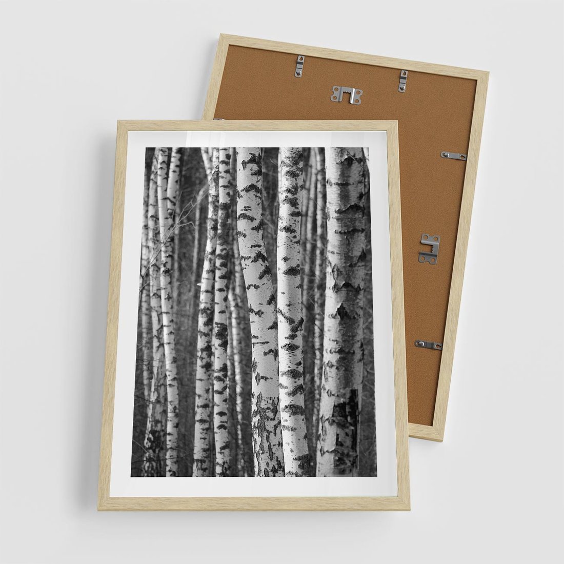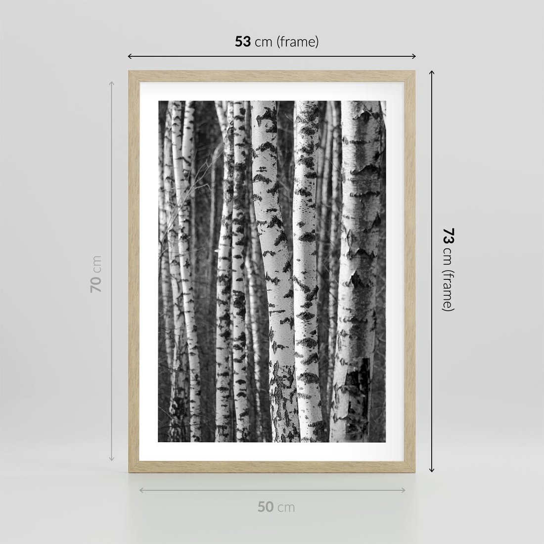 Plakat w ramie 50x70 - Kontrast Monochromatyczny - brzozy, czarno - rama drewno