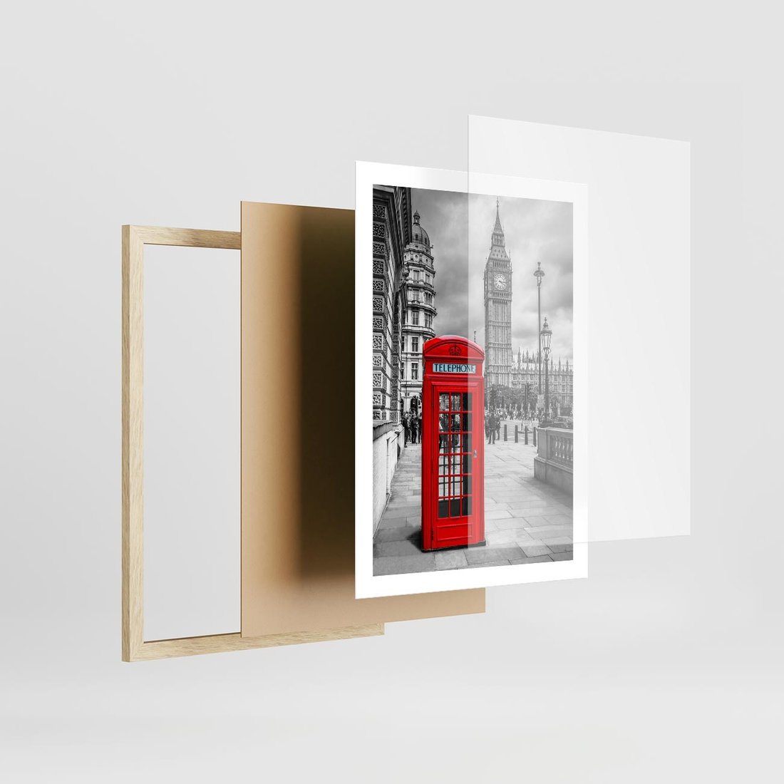 Plakat w ramie 50x70 - Kontrastująca Budka w Londynie - Londyn, budka - rama drewno