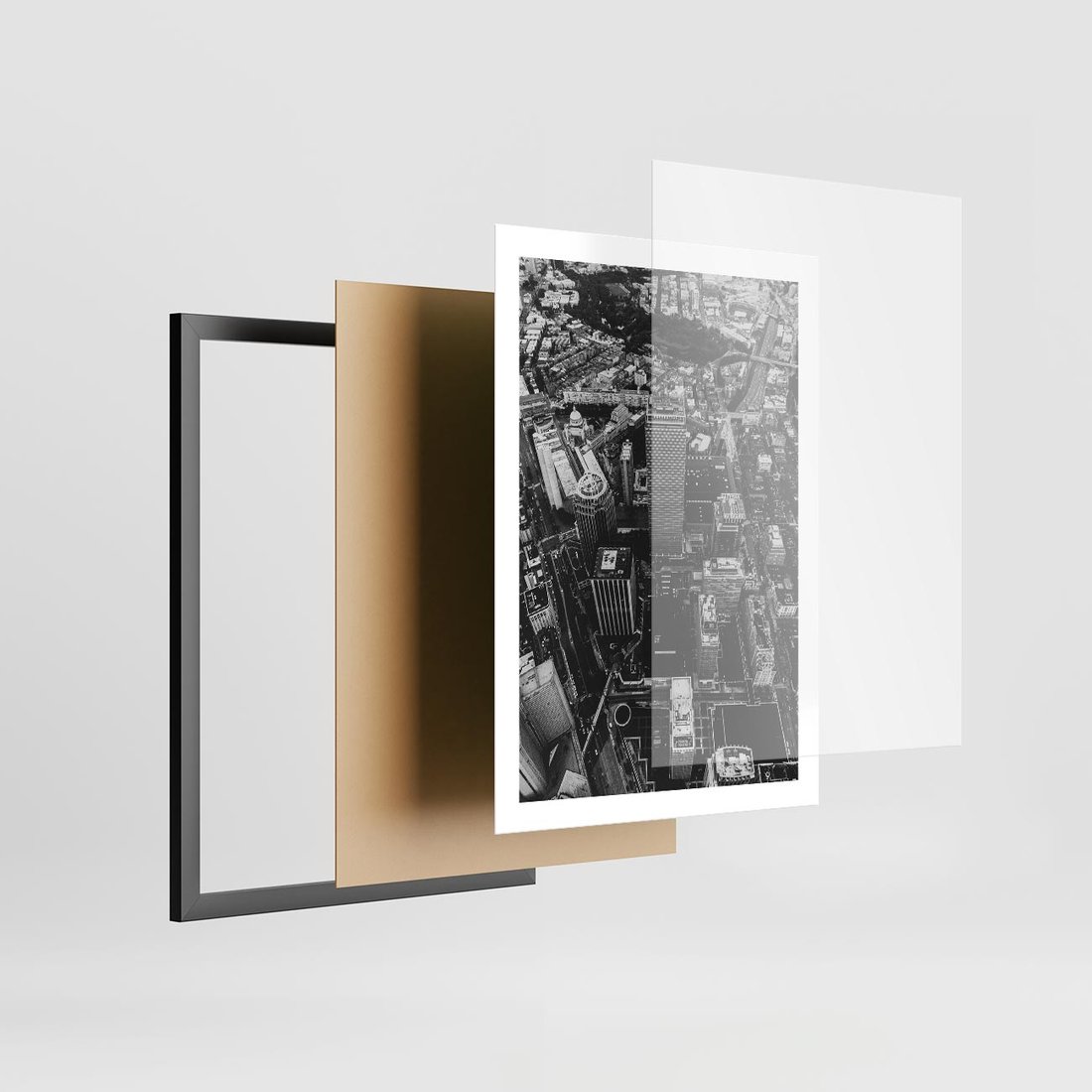 Plakat w ramie 50x70 - Kontrastujące miasto - miasto, biało - rama czarna
