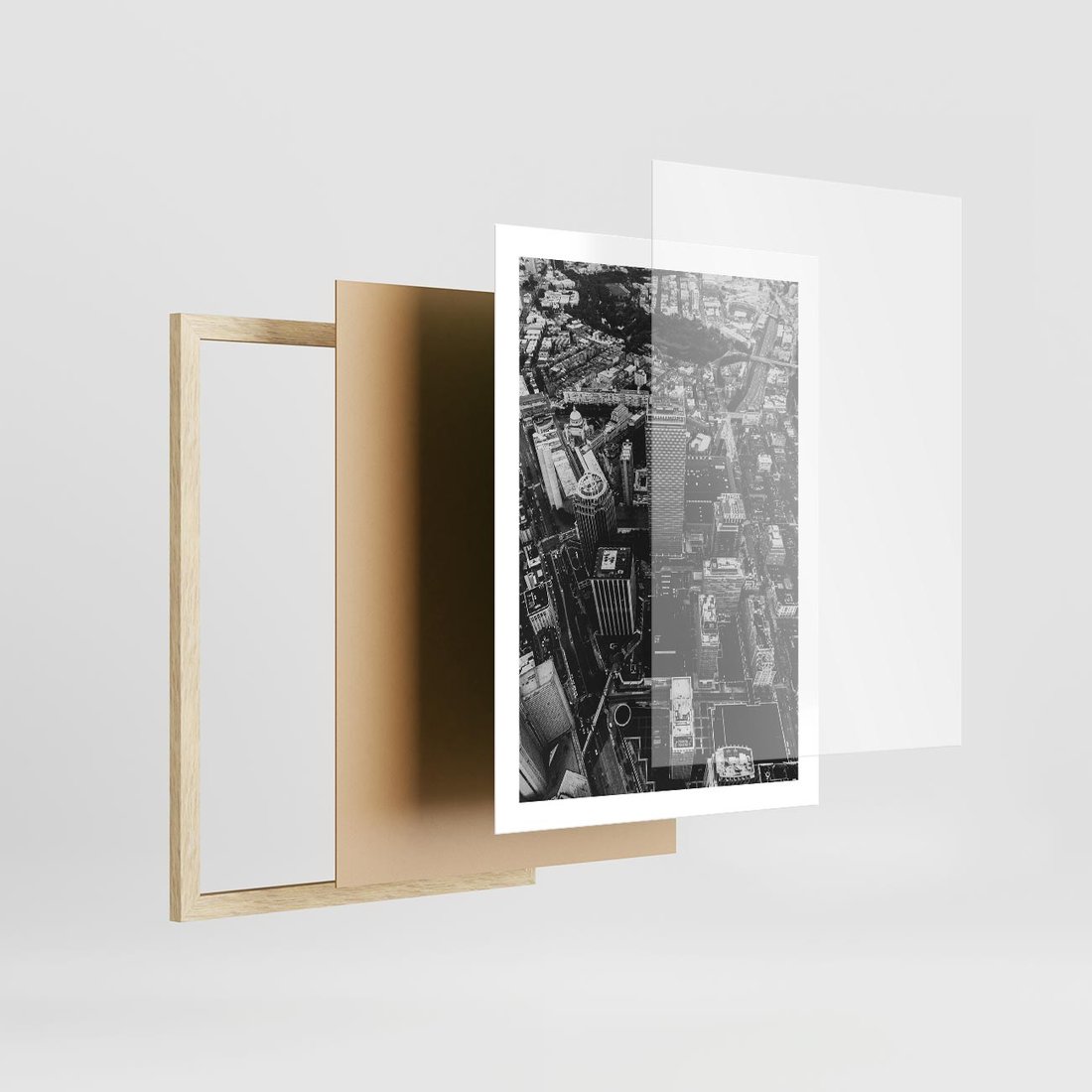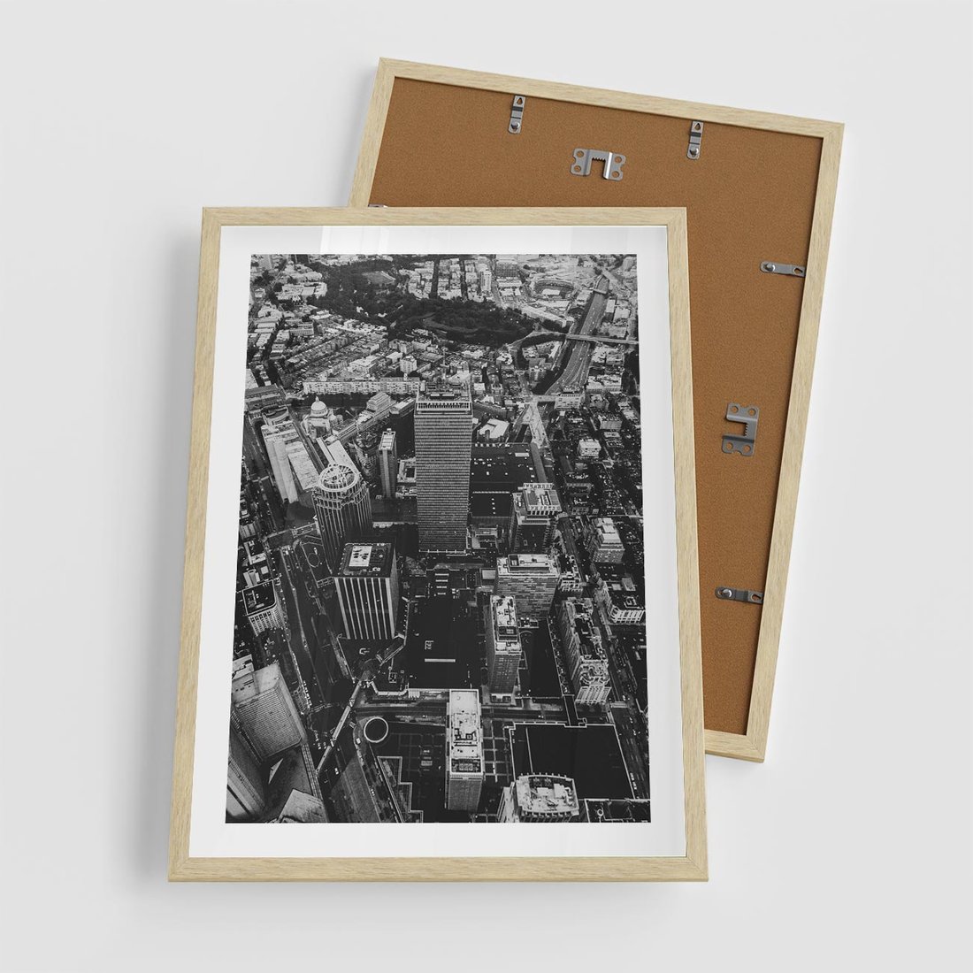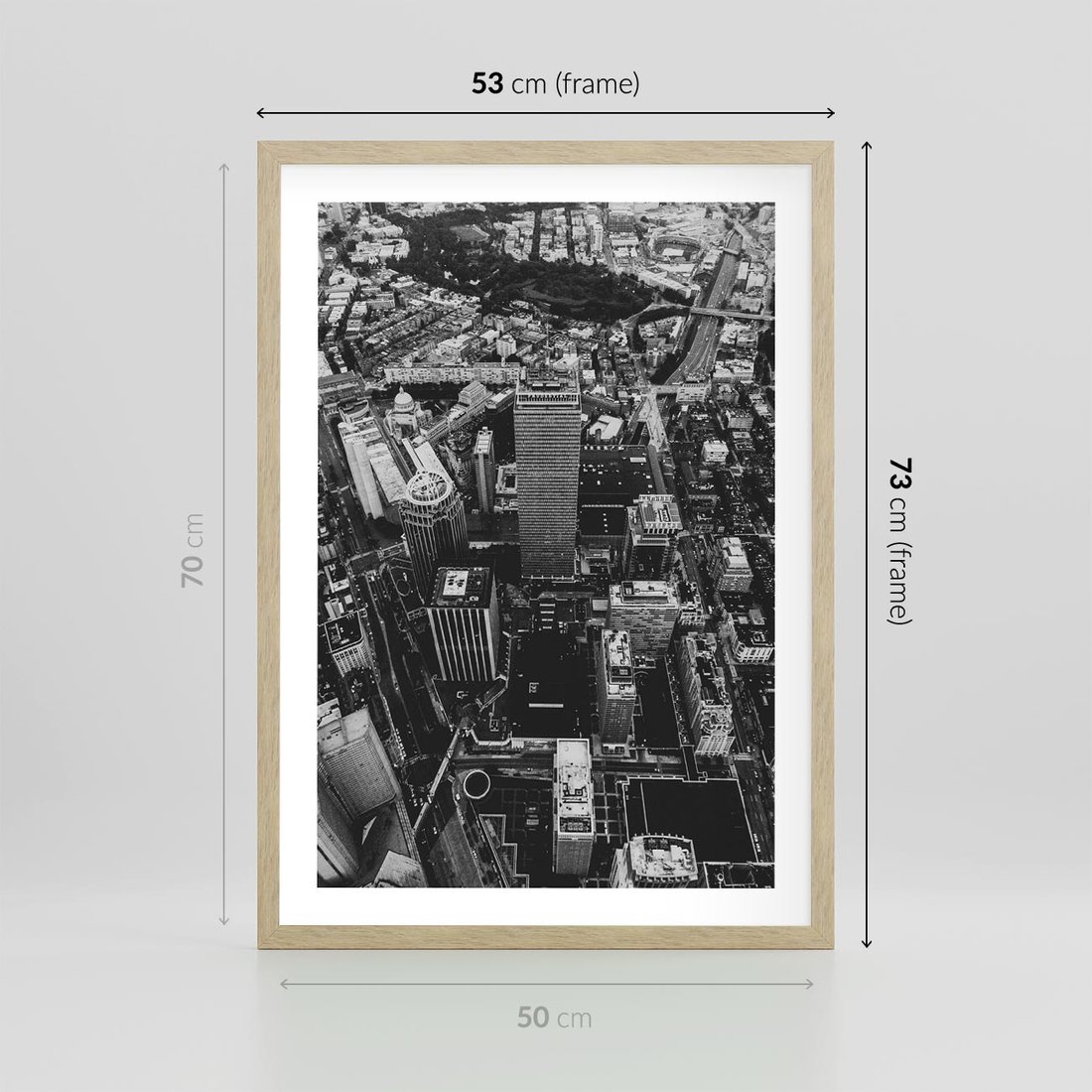 Plakat w ramie 50x70 - Kontrastujące miasto - miasto, biało - rama drewno