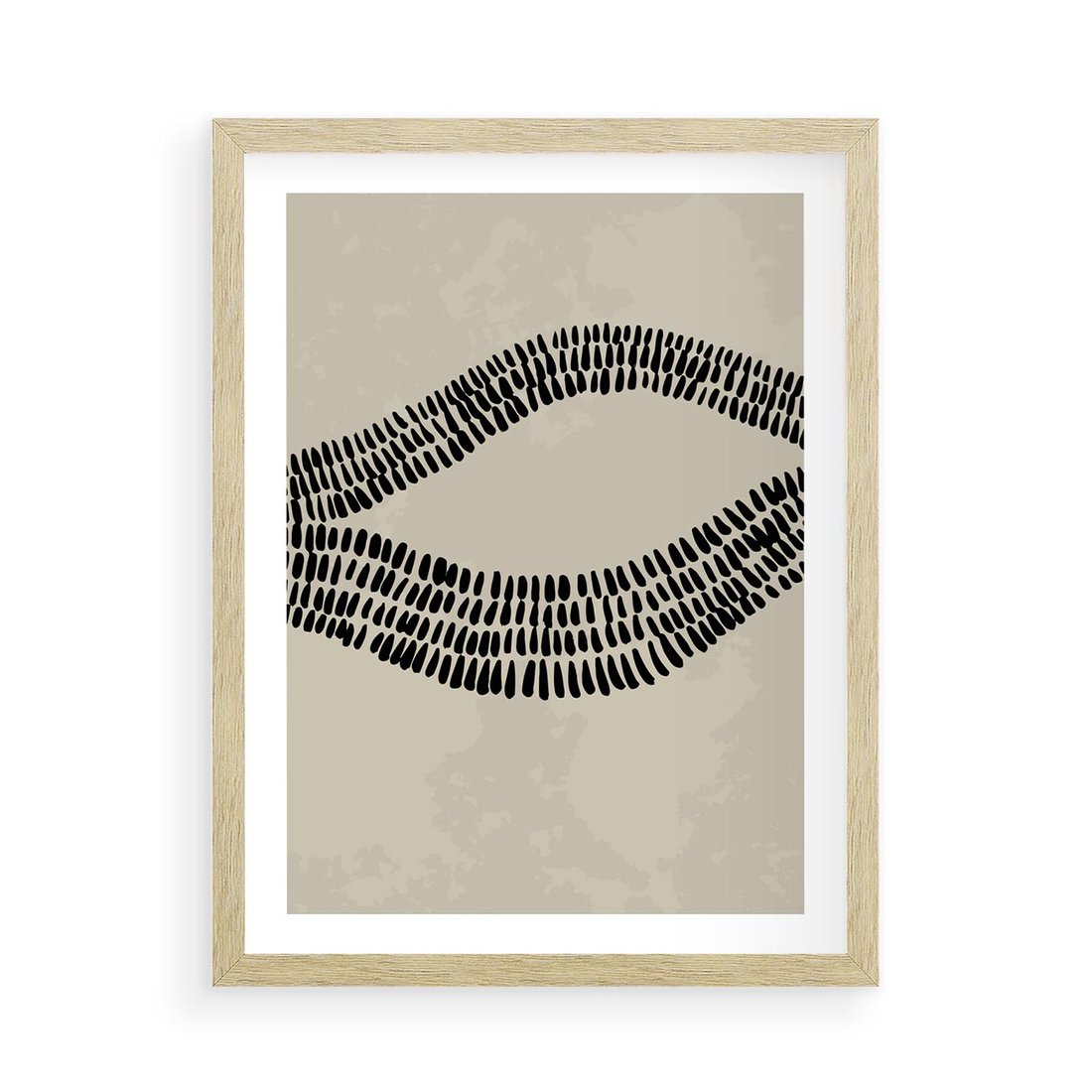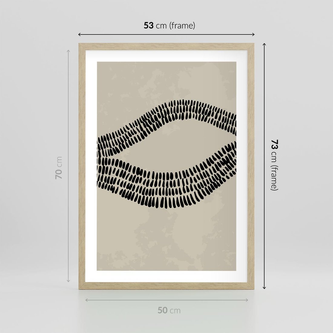 Plakat w ramie 50x70 - Kontury Ewolucji Materii - boho plakat, czarne kropki kreski - rama drewno