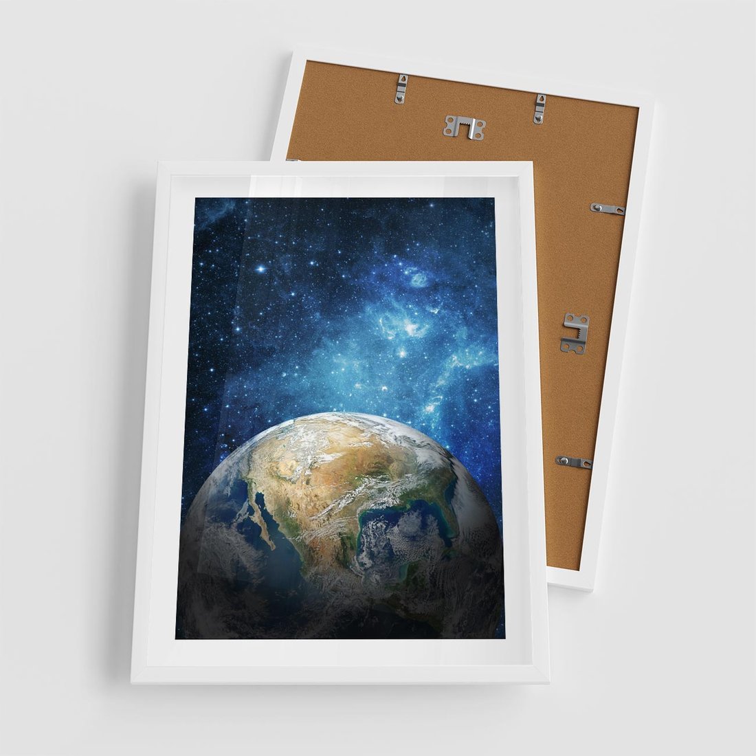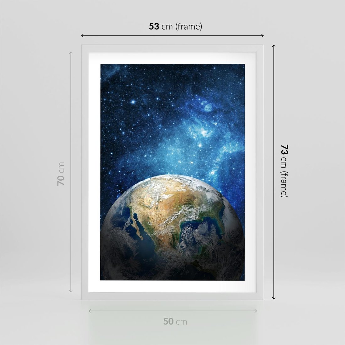 Plakat w ramie 50x70 - Kosmiczne Horyzonty - Ziemia, kosmos - rama biała