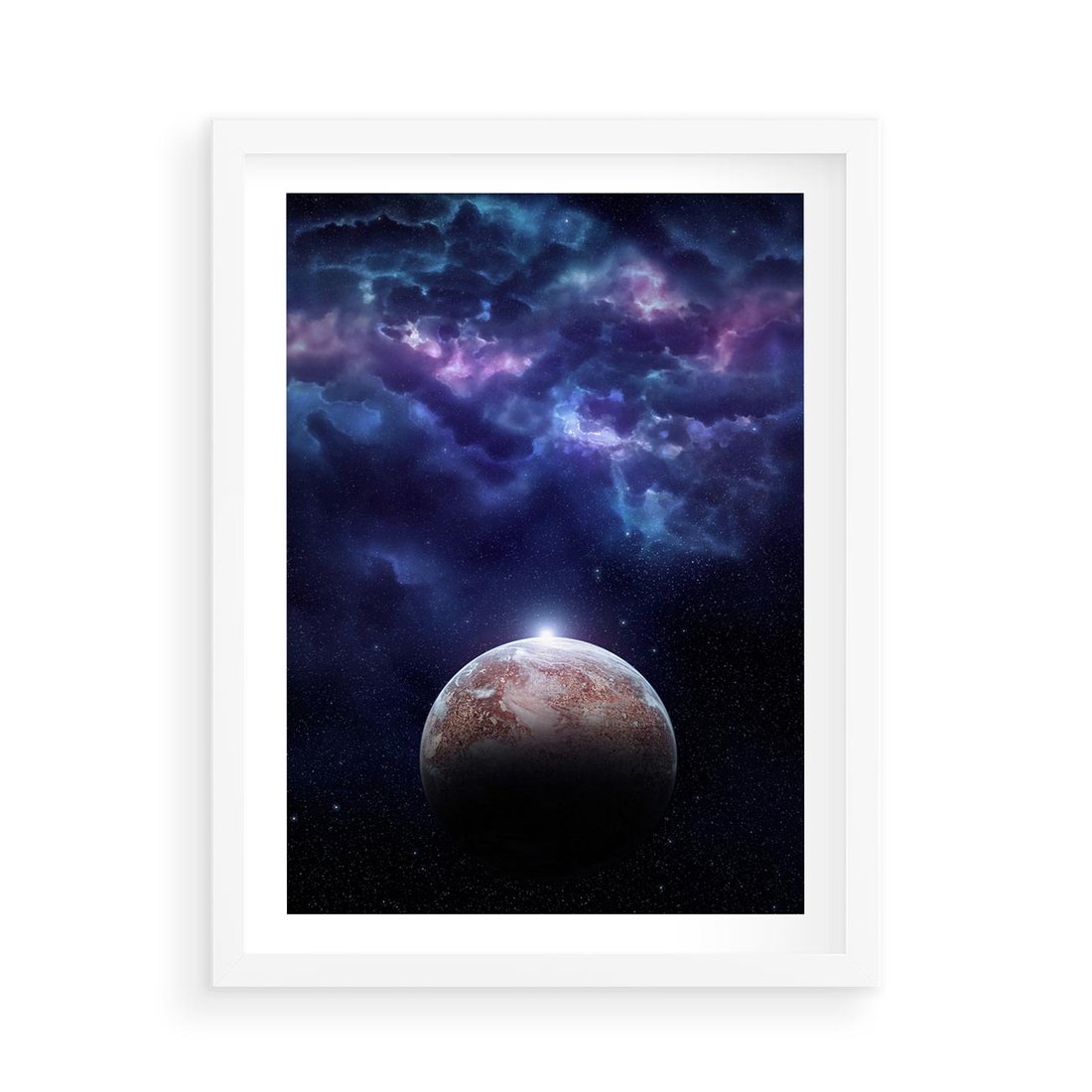Plakat w ramie 50x70 - Kosmos - Ziemia i Księżyc - kosmos, ziemia - rama biała