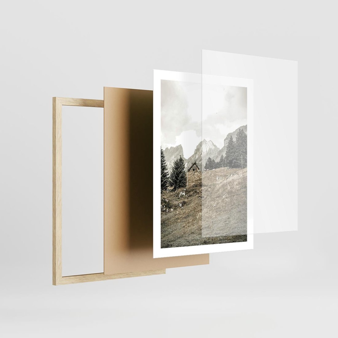 - Plakat w ramie 50x70 - Krajobraz Sepii: Domek w Górach