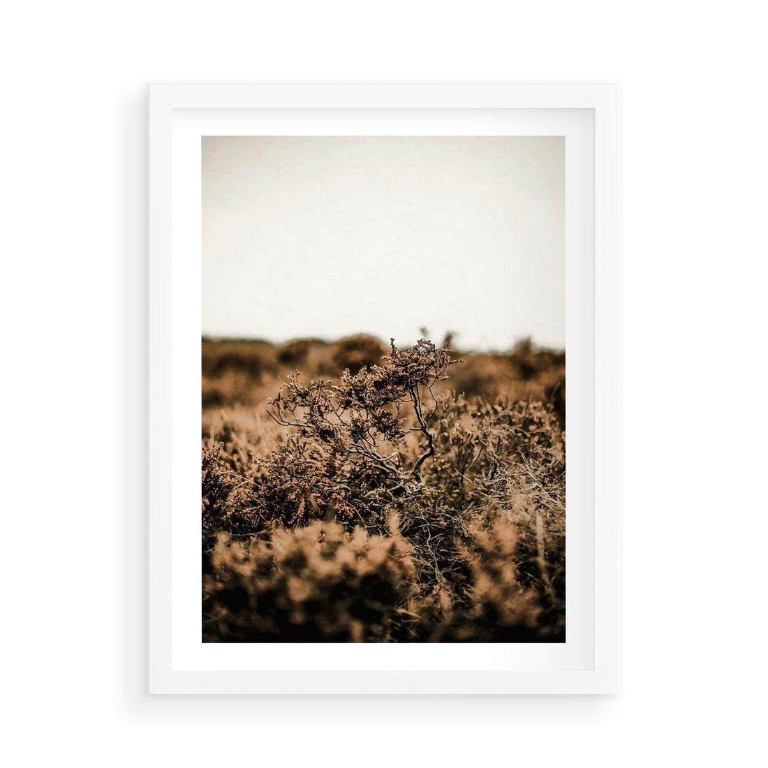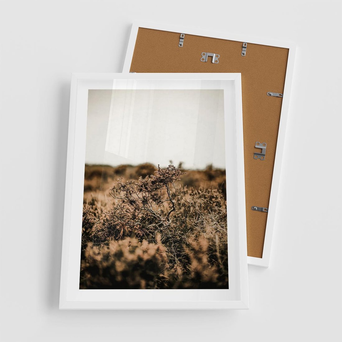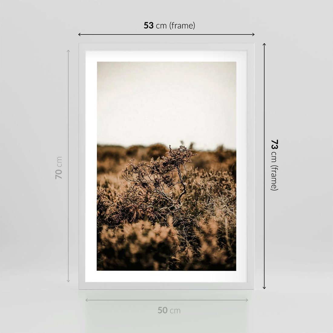 Plakat w ramie 50x70 - Krajobraz W Naturze: Beże i Brązy - suche krzewy, natura - rama biała