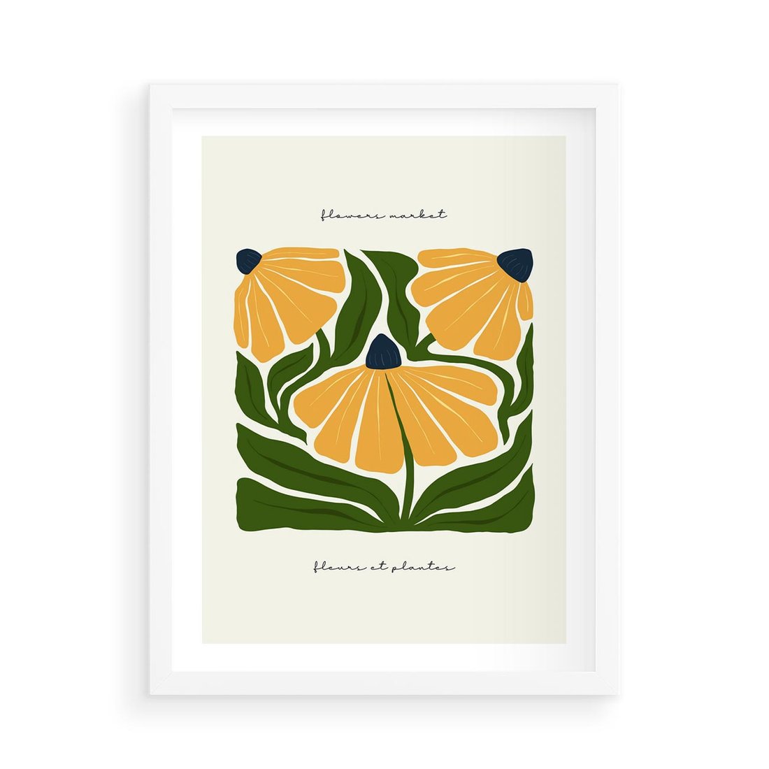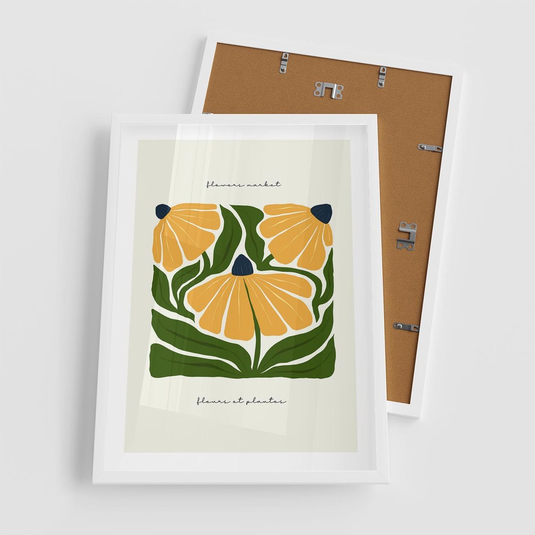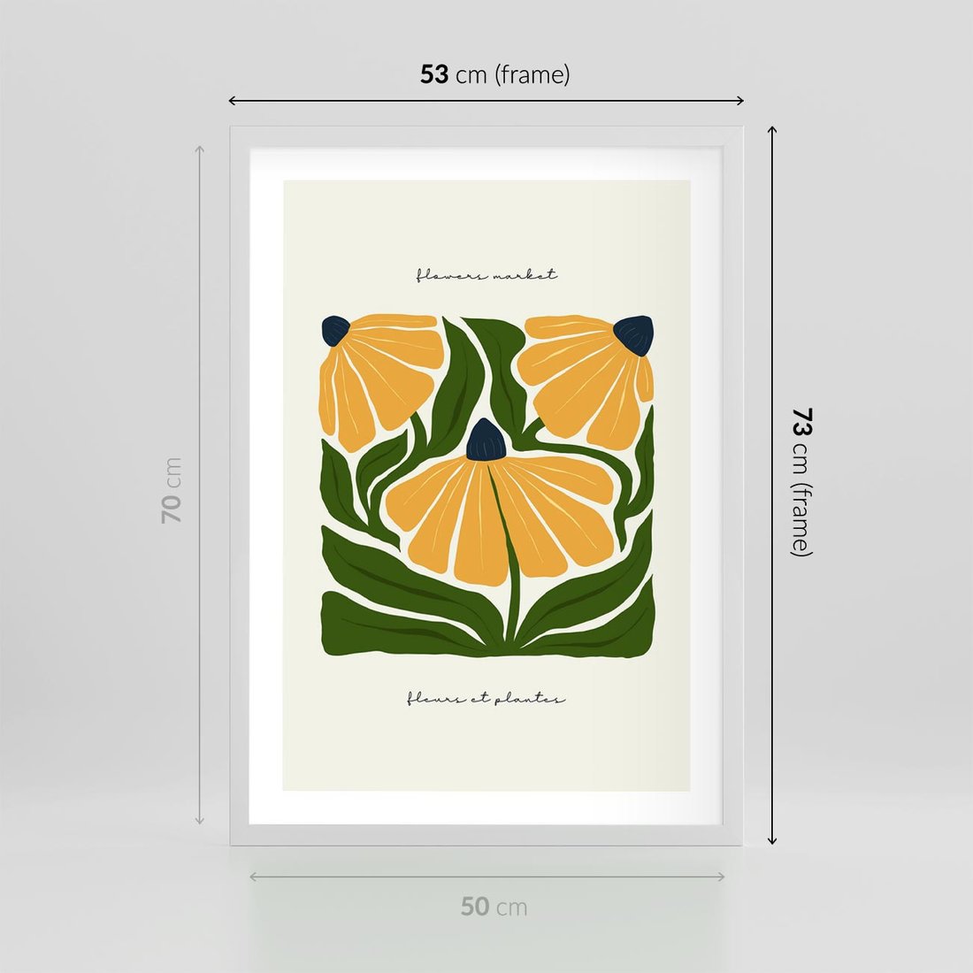 Plakat w ramie 50x70 - Kreatywne Wibracje - sztuka nowoczesna, kolorowe kwiaty - rama biała