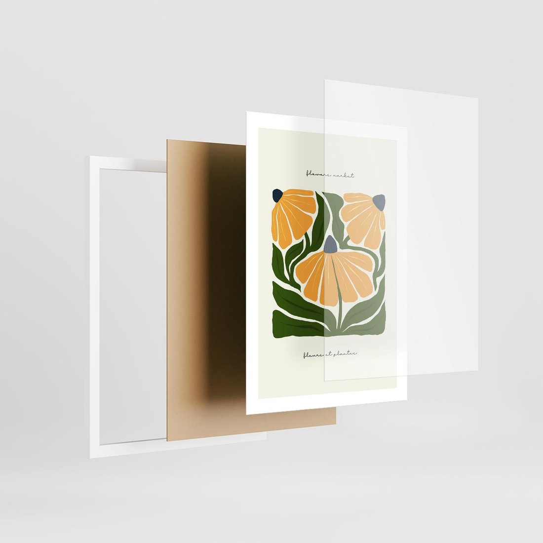 Ta sztuka łączy kolorowe kwiaty w abstrakcyjny taniec, podkreślając ich piękno. Typografia dodaje głębi i znaczenia, tworząc kompozycję, która wprawia w zachwyt i inspiruje do refleksji.
