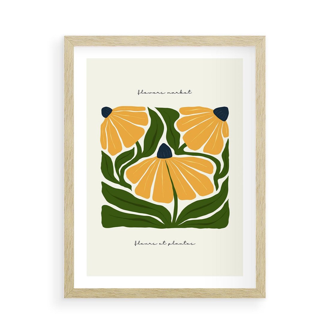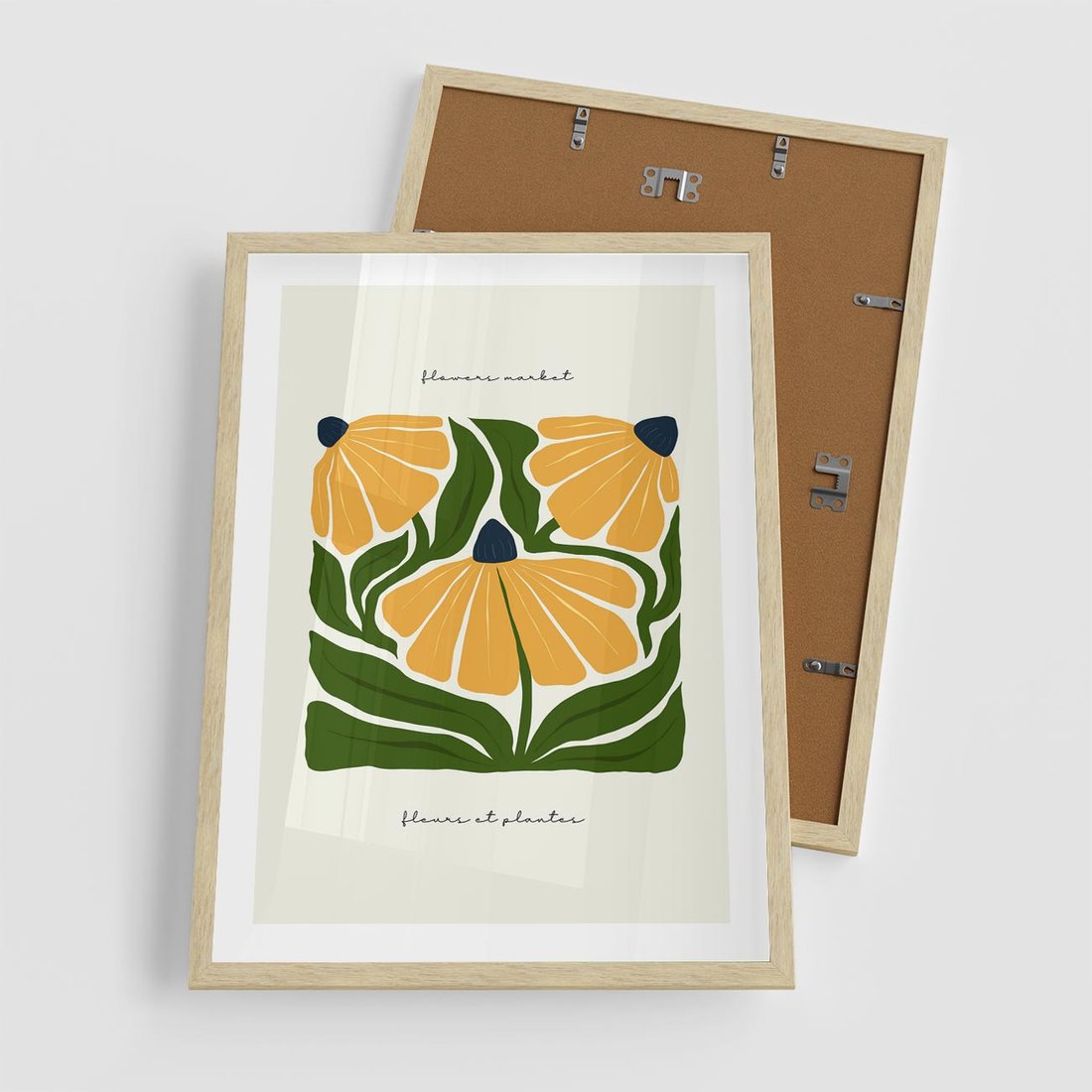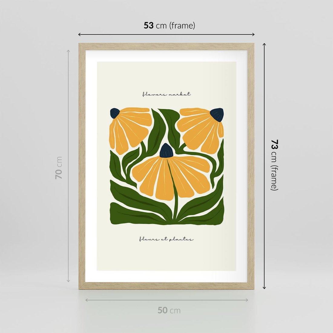 Plakat w ramie 50x70 - Kreatywne Wibracje - sztuka nowoczesna, kolorowe kwiaty - rama drewno