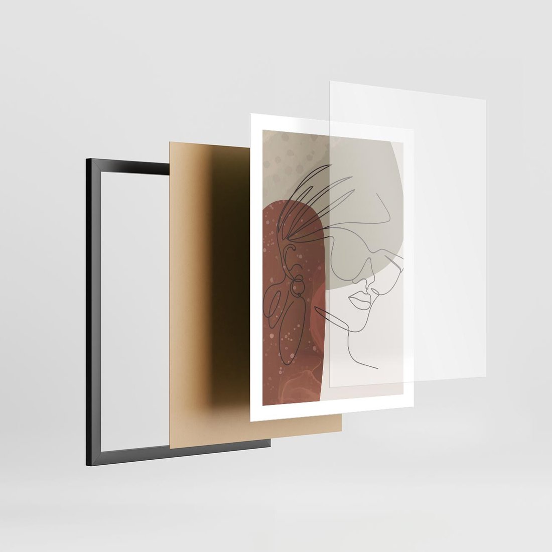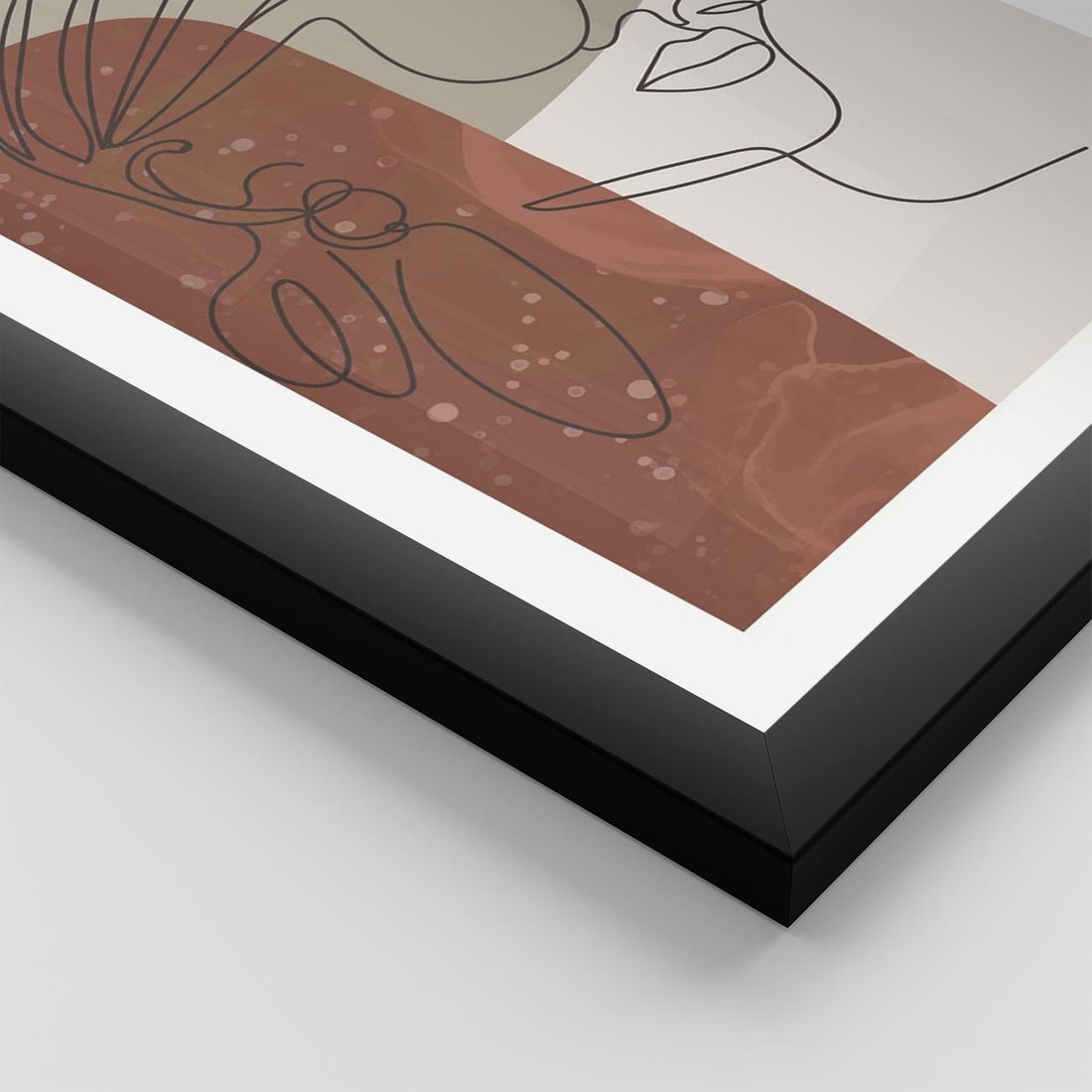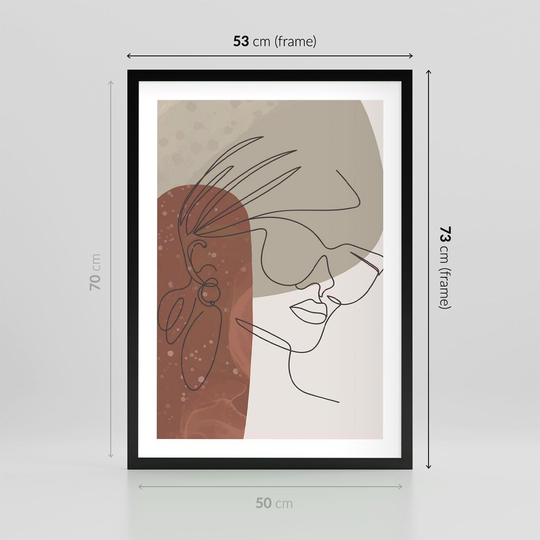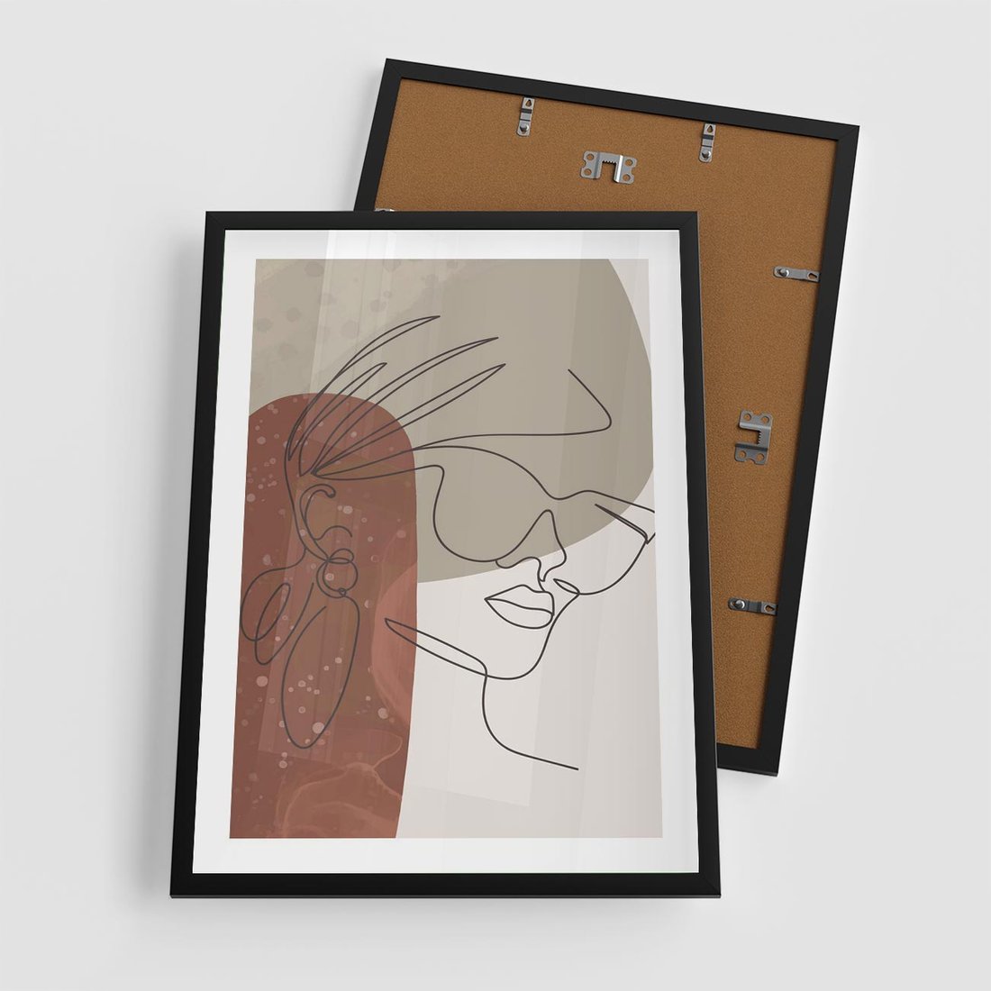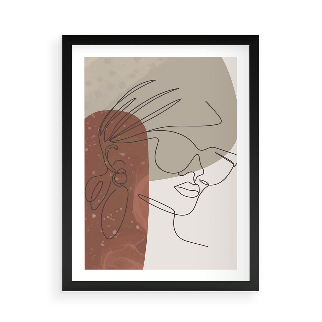 Obraz przedstawia abstrakcyjną grafikę, na której tło składa się z plam, a portret kobiety jest narysowany jedną linią. Ta kompozycja artystyczna wyraża kreatywność i oryginalność, idealnie pasując do wnętrz, które pragną wyrazić unikalny charakter.