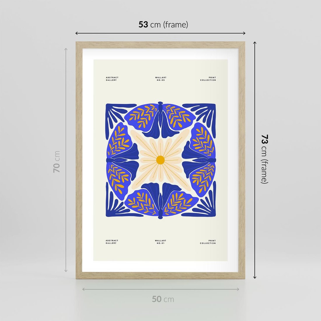 Ten nowoczesny plakat prezentuje abstrakcyjną boho kompozycję, gdzie granatowe ćmy spotykają się z kwiatami. Sztuka ta przenosi nas w magiczny świat natury, łącząc abstrakcję z elementami boho w oryginalny i inspirujący sposób.