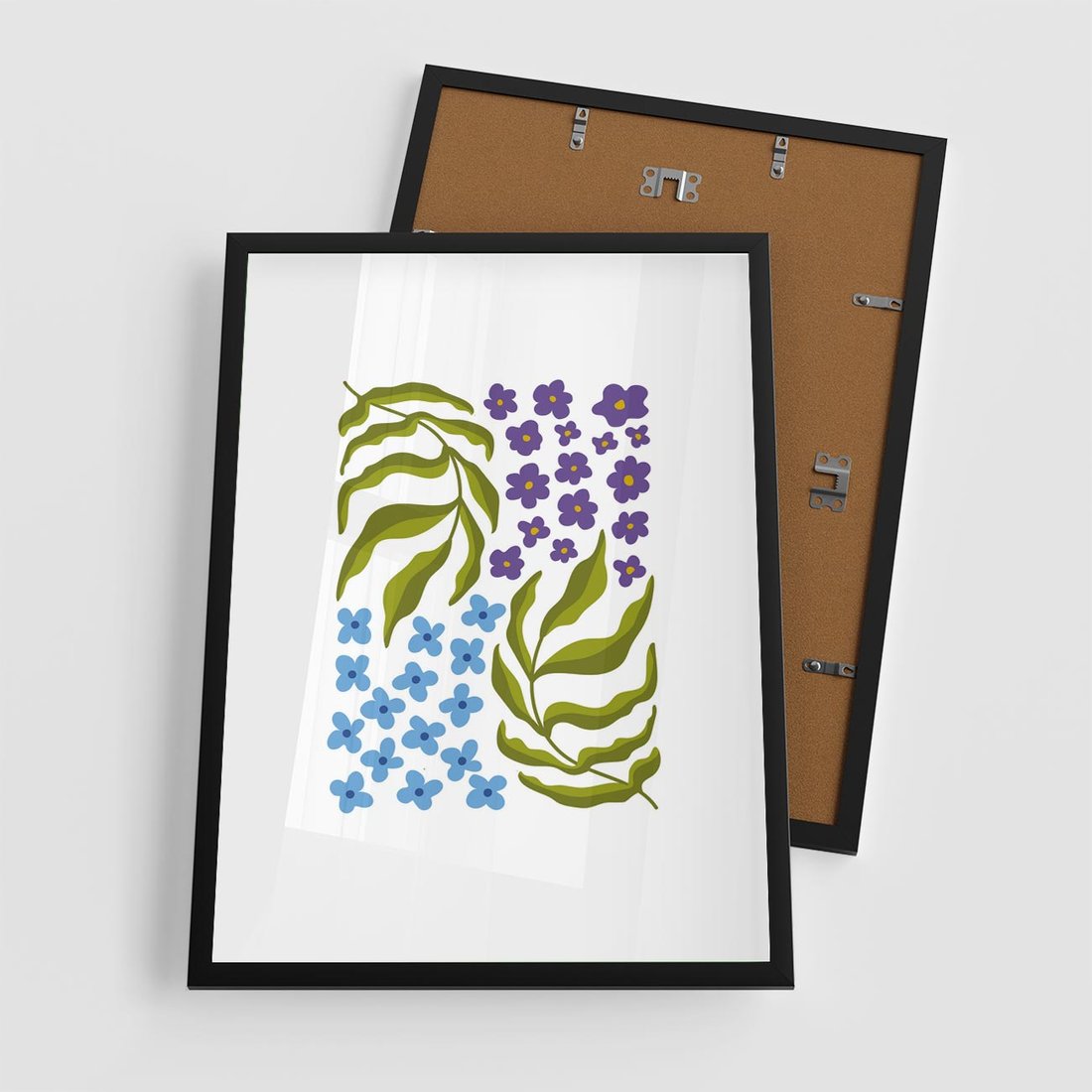 Ten minimalistyczny plakat prezentuje nowoczesne kompozycje kwiatowe. Współgrające linie i delikatne formy kwiatów tworzą elegancką harmonię, przynosząc do Twojej przestrzeni subtelne piękno natury w minimalistycznym wydaniu.