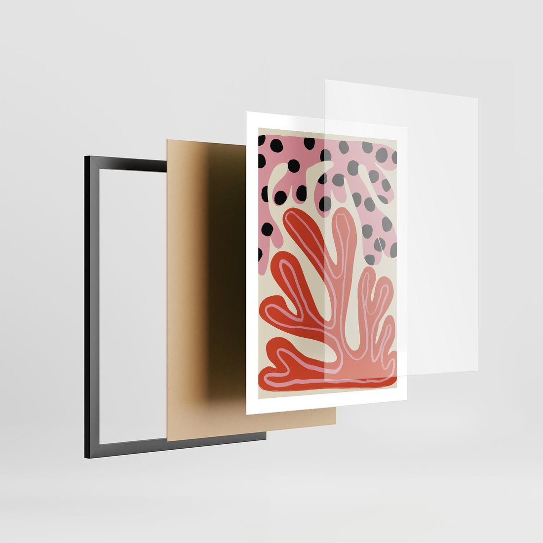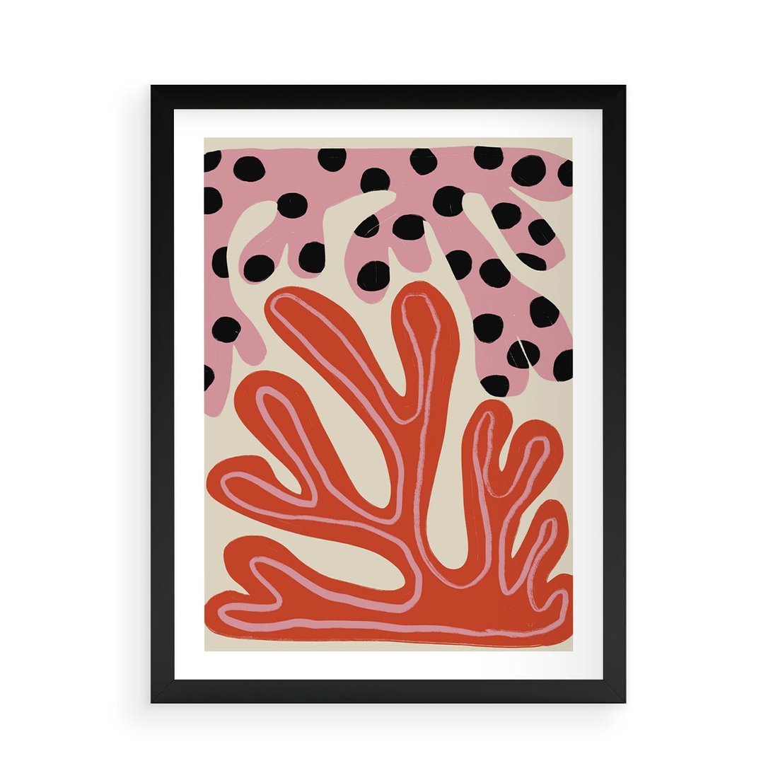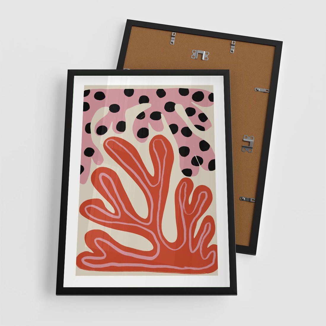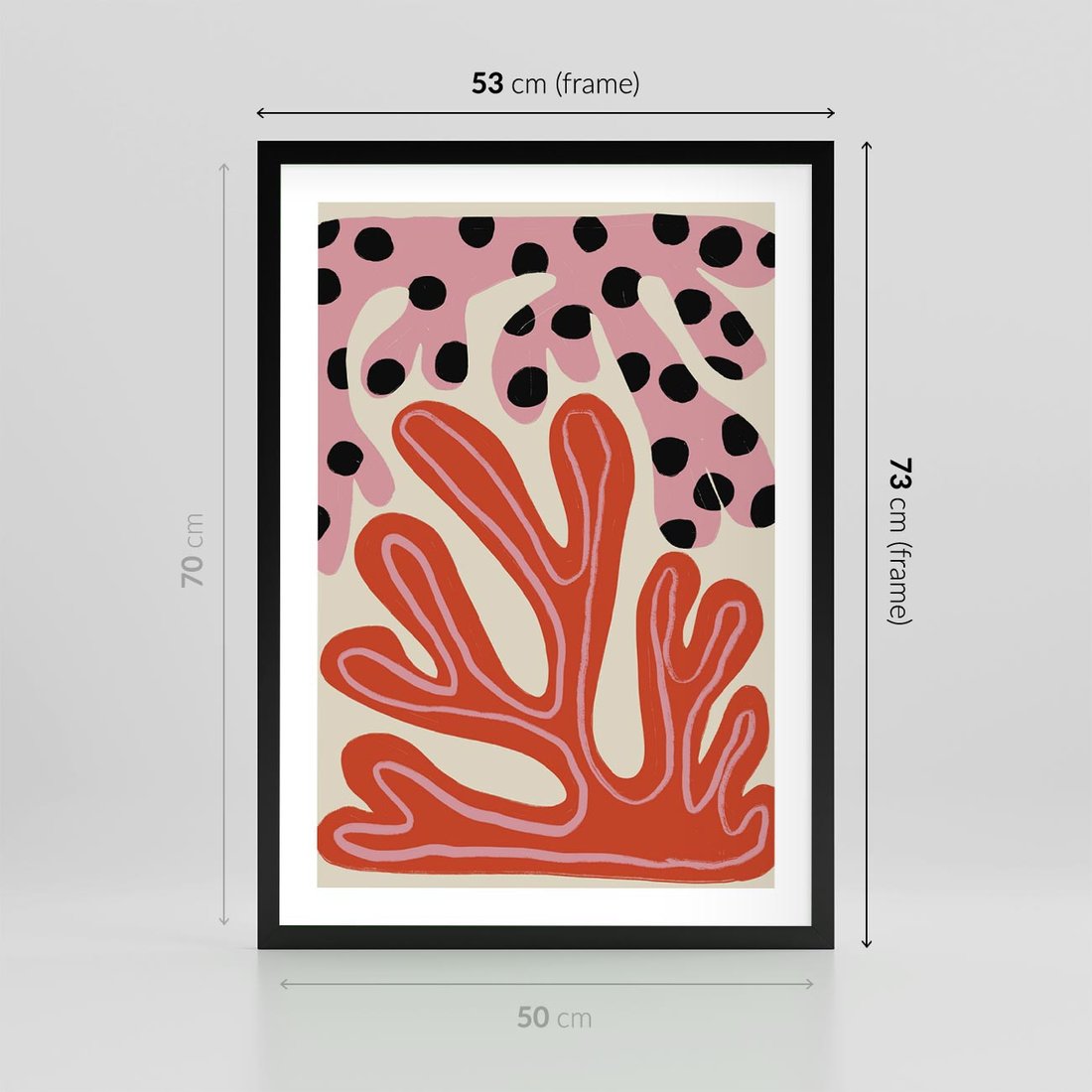 Ten abstrakcyjny obraz w formie plakatu fascynuje dziwnymi kształtami, które tworzą harmonię w odcieniach różowego i czerwonego. Jego wyjątkowość polega na zdolności zachęcania do refleksji, pobudzając wyobraźnię widza poprzez niekonwencjonalne kompozycje i intensywne barwy.