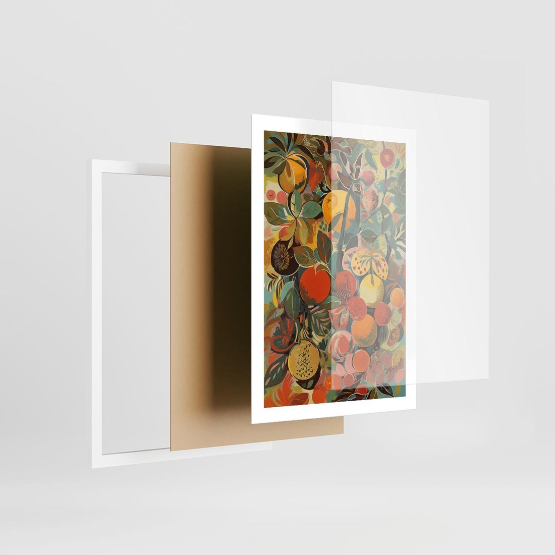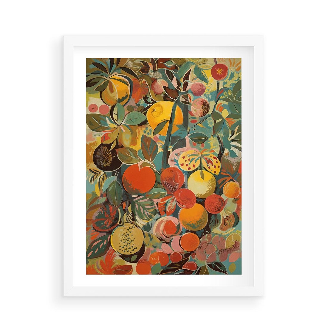 Plakat w ramie 50x70 - Księga Surrealnych Wyobrażeń - abstrakcyjny obraz owoców, jak picasso - rama biała