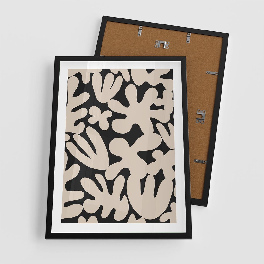 Plakat w ramie 50x70 - Księga Ukrytych Widoków - abstrakcyjne czarno białe formy, minimalizm - rama czarna