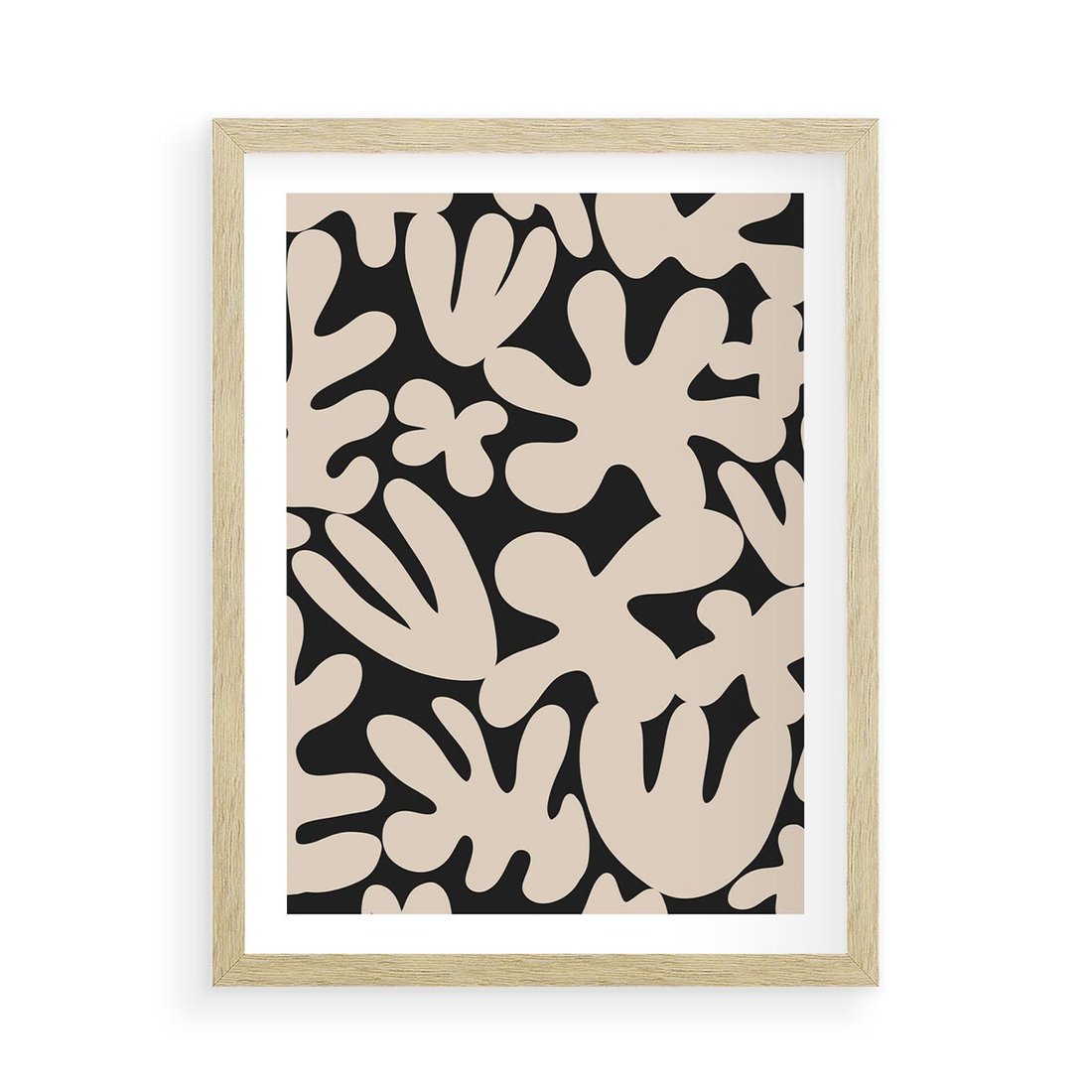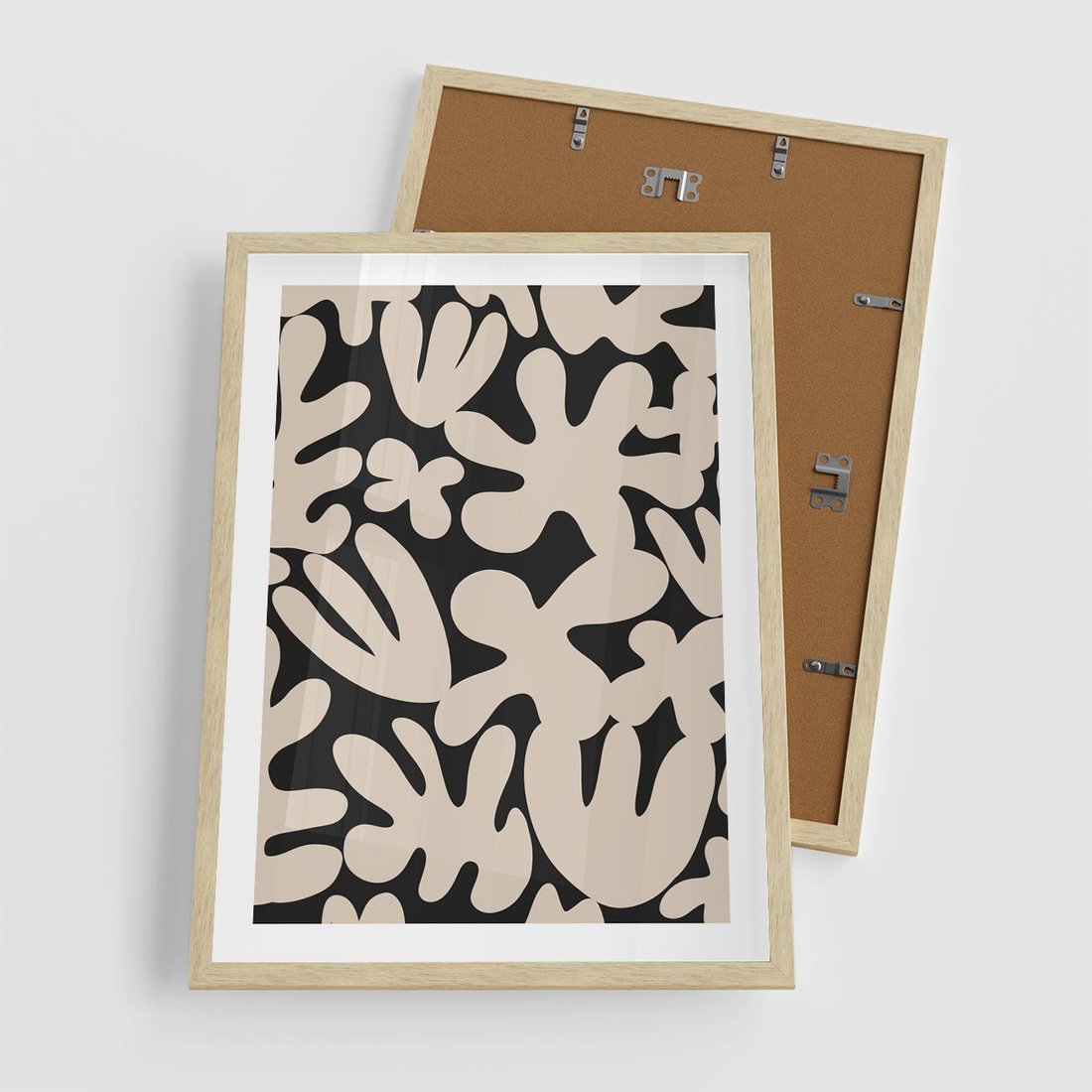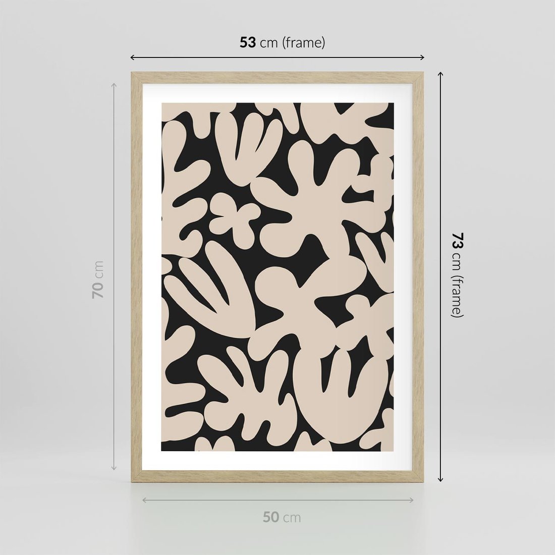 Plakat w ramie 50x70 - Księga Ukrytych Widoków - abstrakcyjne czarno białe formy, minimalizm - rama drewno
