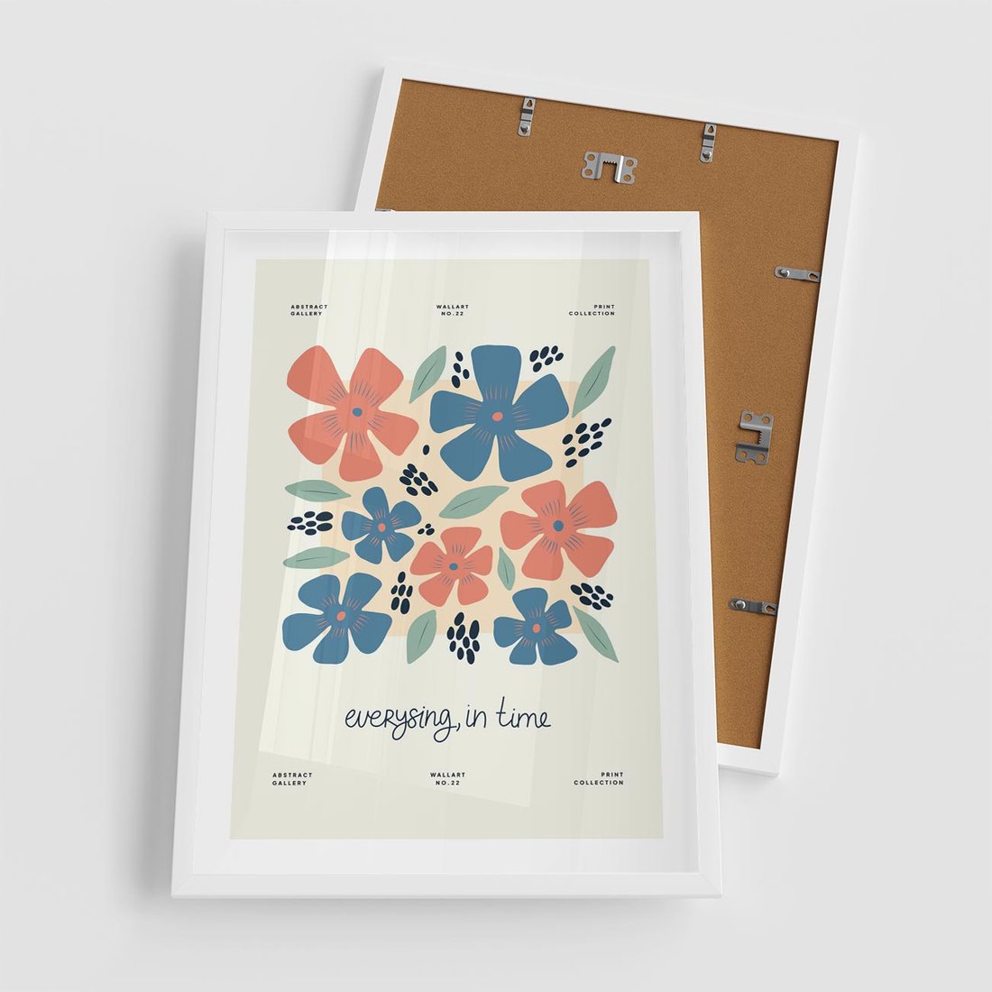 Ten plakat w nowoczesnej abstrakcji odkrywa piękno kwiatów, balansując z delikatną typografią. Kompozycja oddaje wyjątkową estetykę natury i sztuki, tworząc inspirującą przestrzeń.