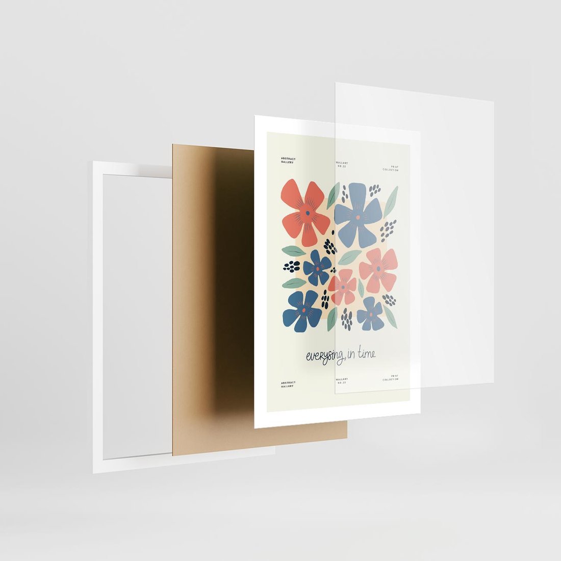 Plakat w ramie 50x70 - Kształtując Marzenia - kwiaty, nowoczesna abstrakcja - rama biała