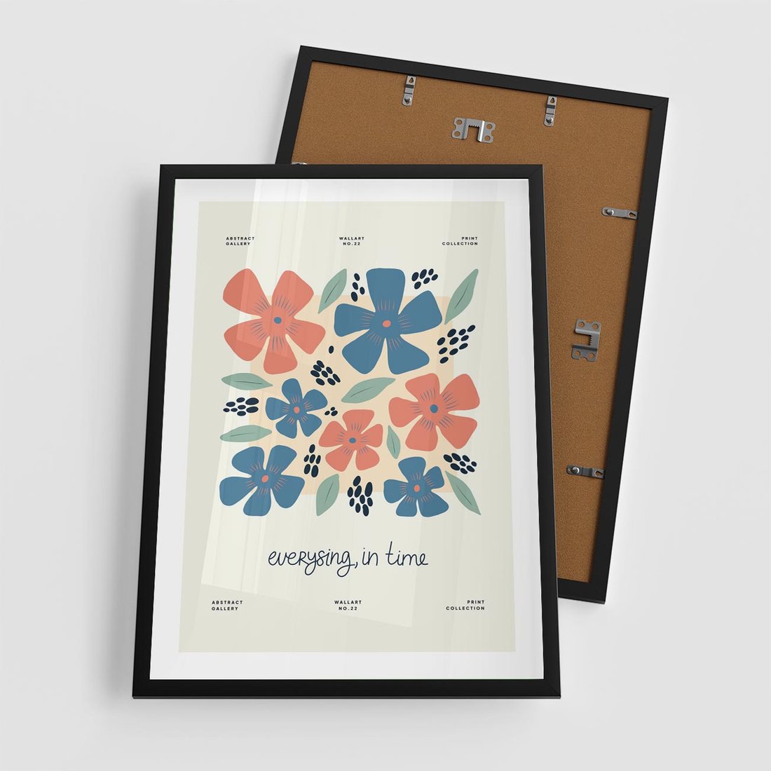 Ten plakat w nowoczesnej abstrakcji odkrywa piękno kwiatów, balansując z delikatną typografią. Kompozycja oddaje wyjątkową estetykę natury i sztuki, tworząc inspirującą przestrzeń.