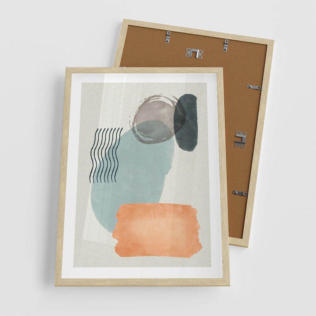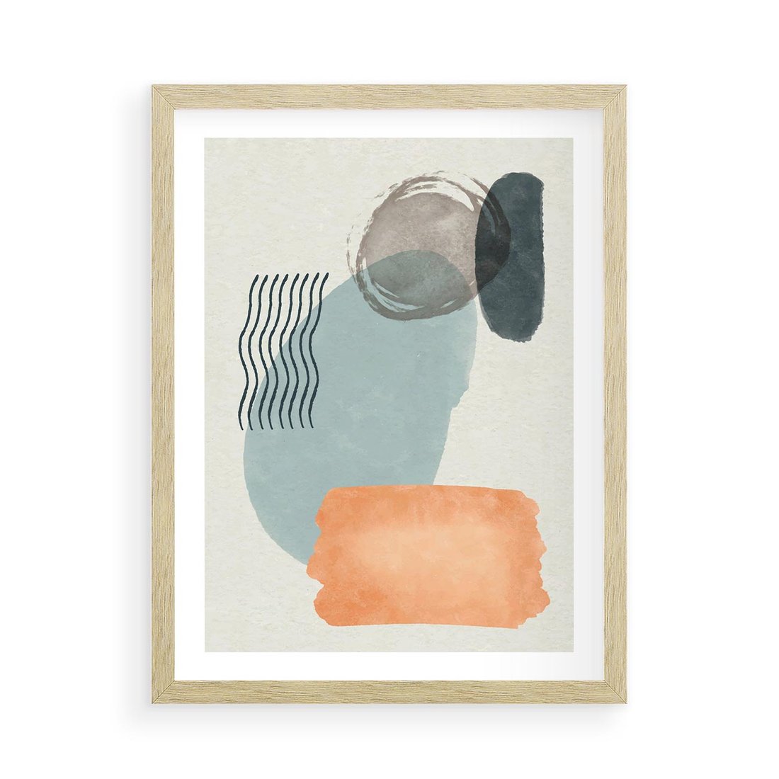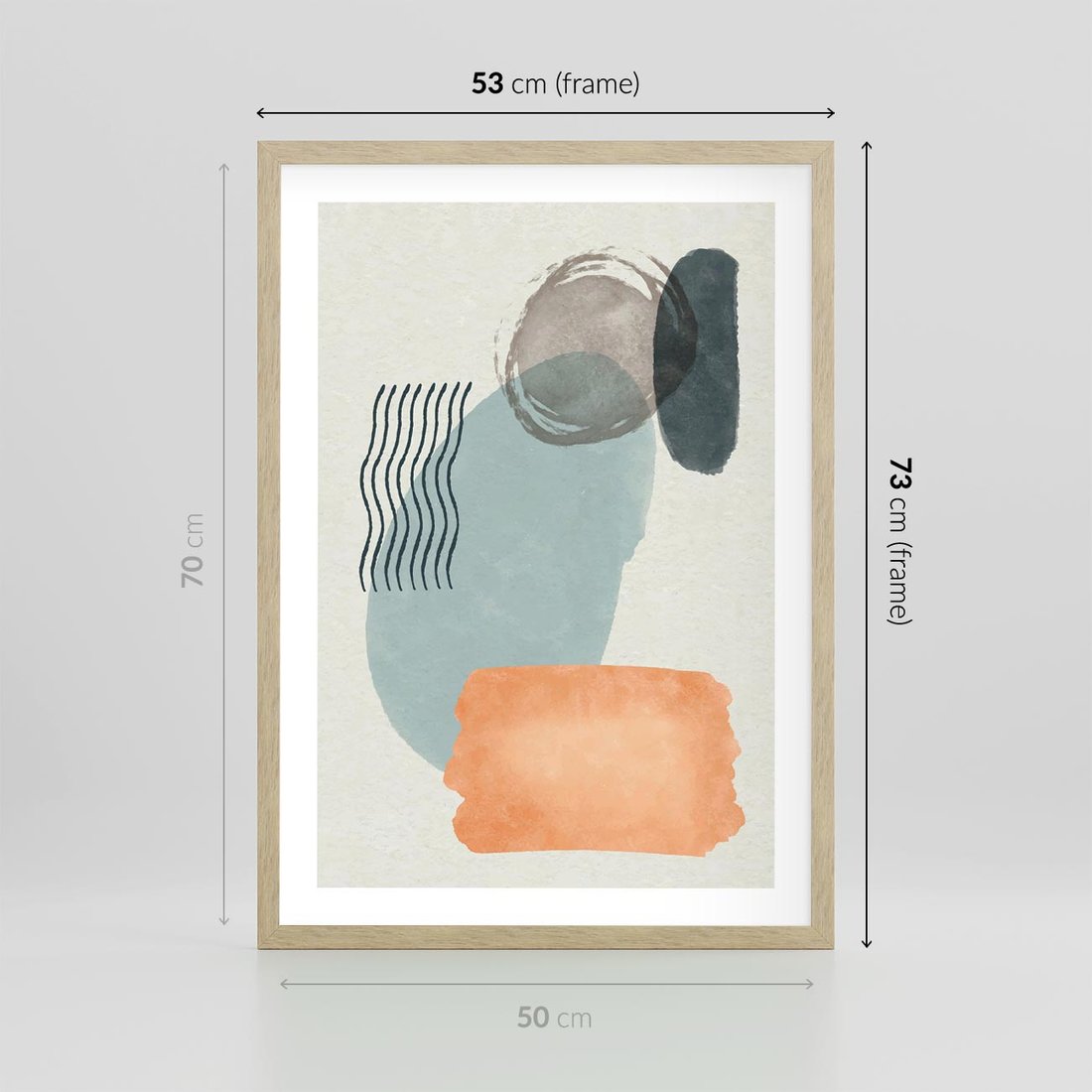 Plakat w ramie 50x70 - Kształtujące Plamy - geometryczne elementy, stonowane ziemiste kolory - rama drewno