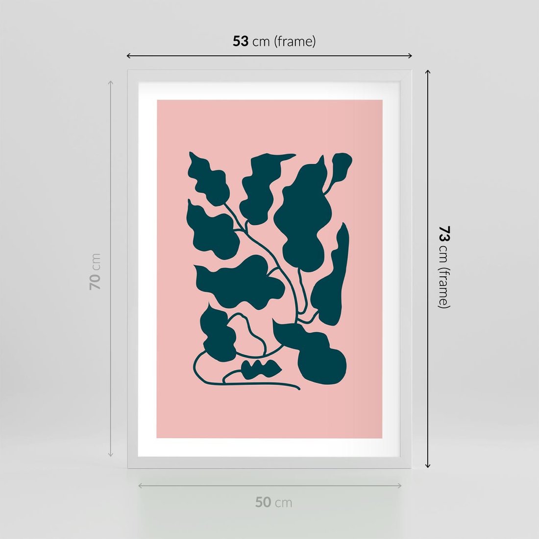 Plakat w ramie 50x70 - Kształty Nieznanego Świata - abstrakcyjne liście, boho styl - rama biała