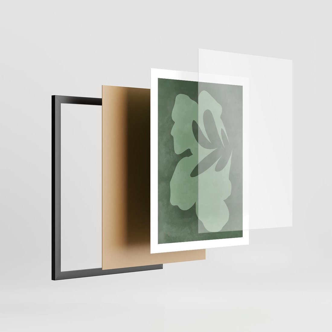 Plakat w ramie 50x70 - Kształty Zieleni - abstrakcyjny kształt, zielony plakat - rama czarna