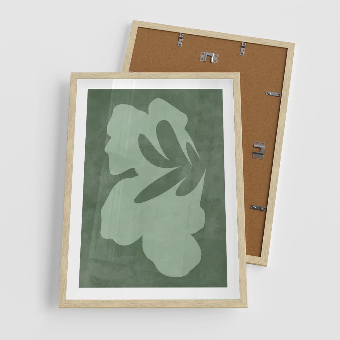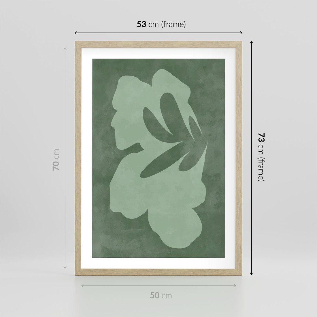 Plakat w ramie 50x70 - Kształty Zieleni - abstrakcyjny kształt, zielony plakat - rama drewno