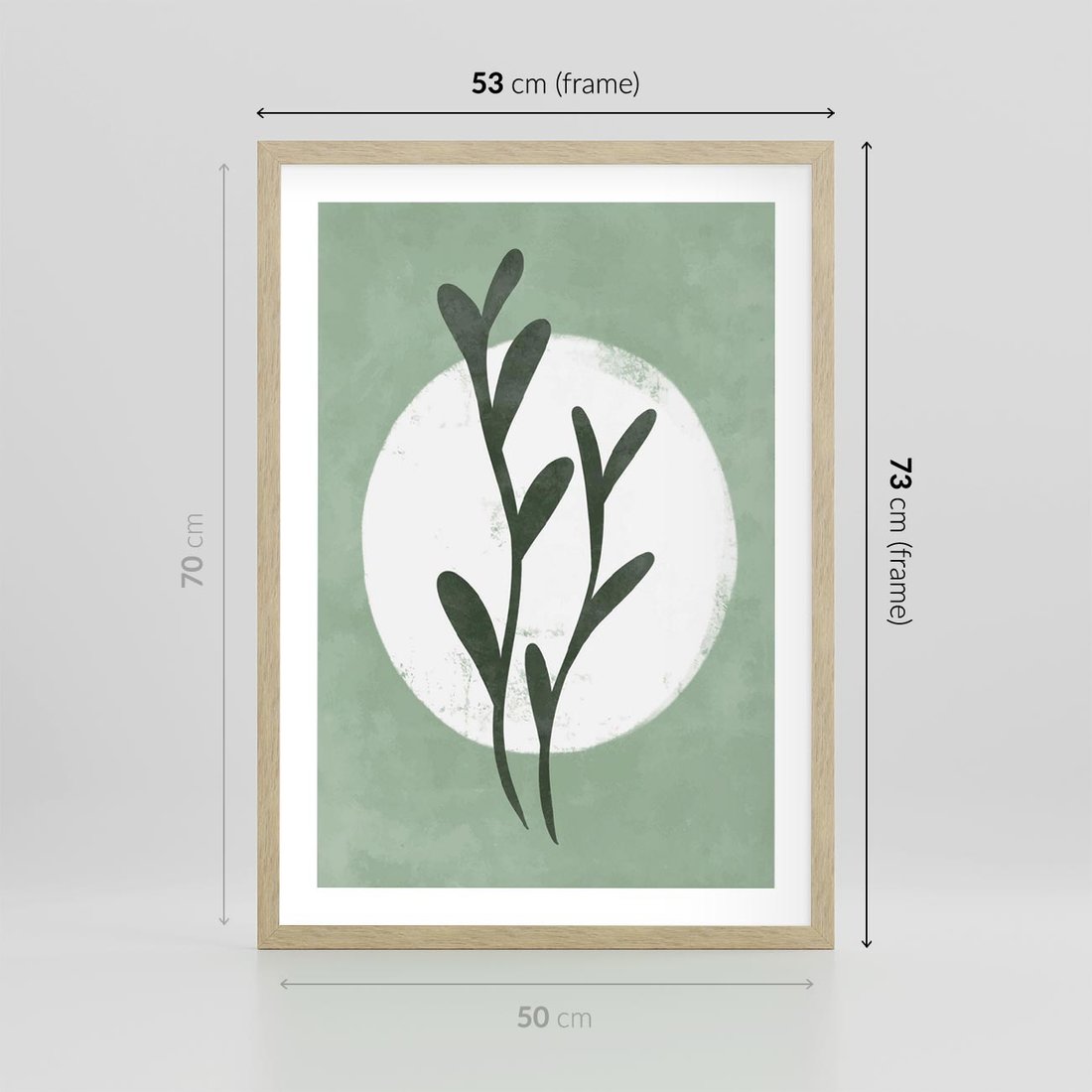 Plakat w ramie 50x70 - Kształty Zielonego Ukojenia - zielony plakat, roślinne motywy - rama drewno